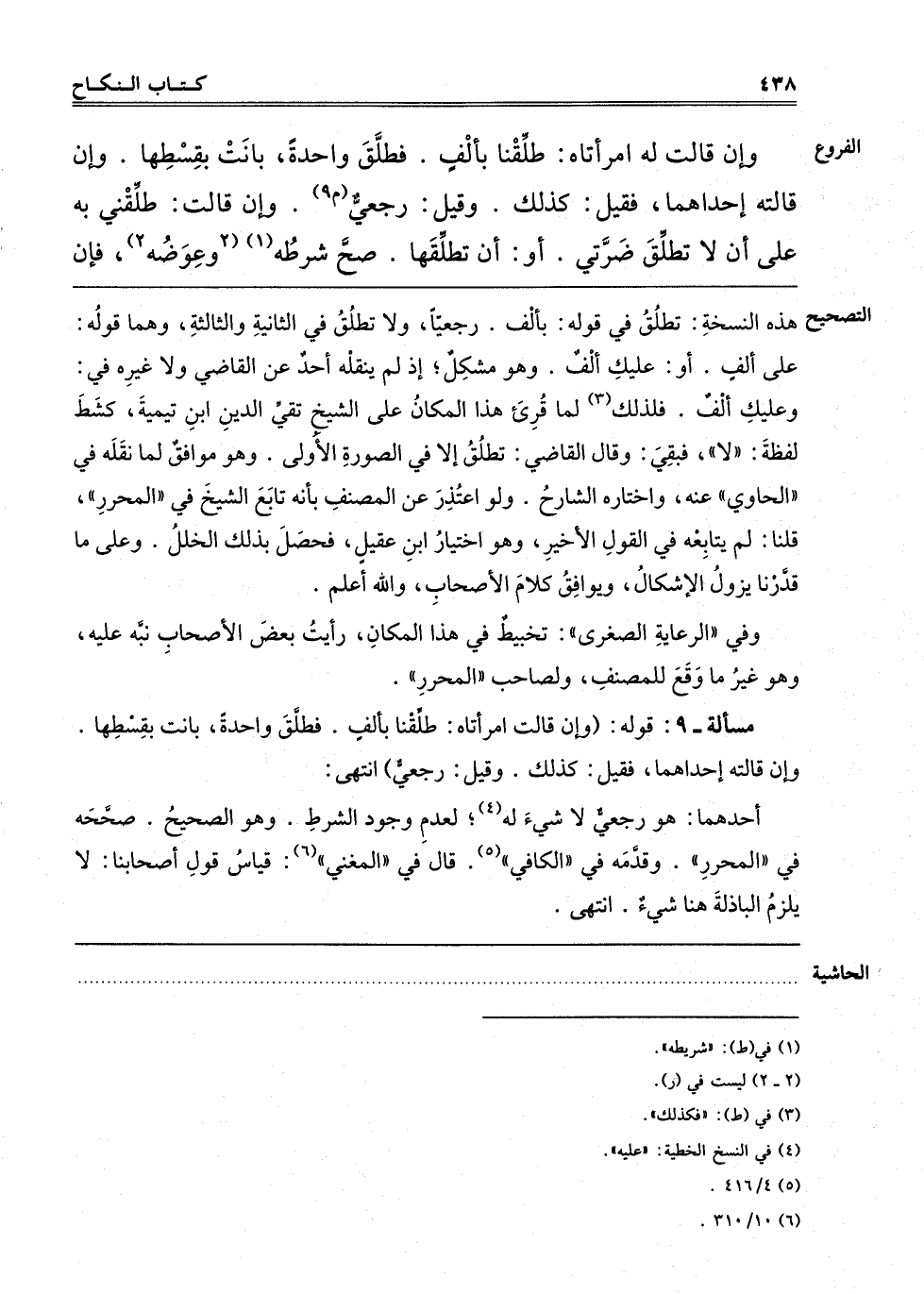 وَفِي الرِّعَايَةِ الصُّغْرَى تَخْبِيطٌ فِي هَذَا الْمَكَانِ، رَأَيْت بَعْضَ الْأَصْحَابِ نَبَّهَ عَلَيْهِ وَهُوَ غَيْرُ مَا وقع للمصنف ولصاحب المحرر.
