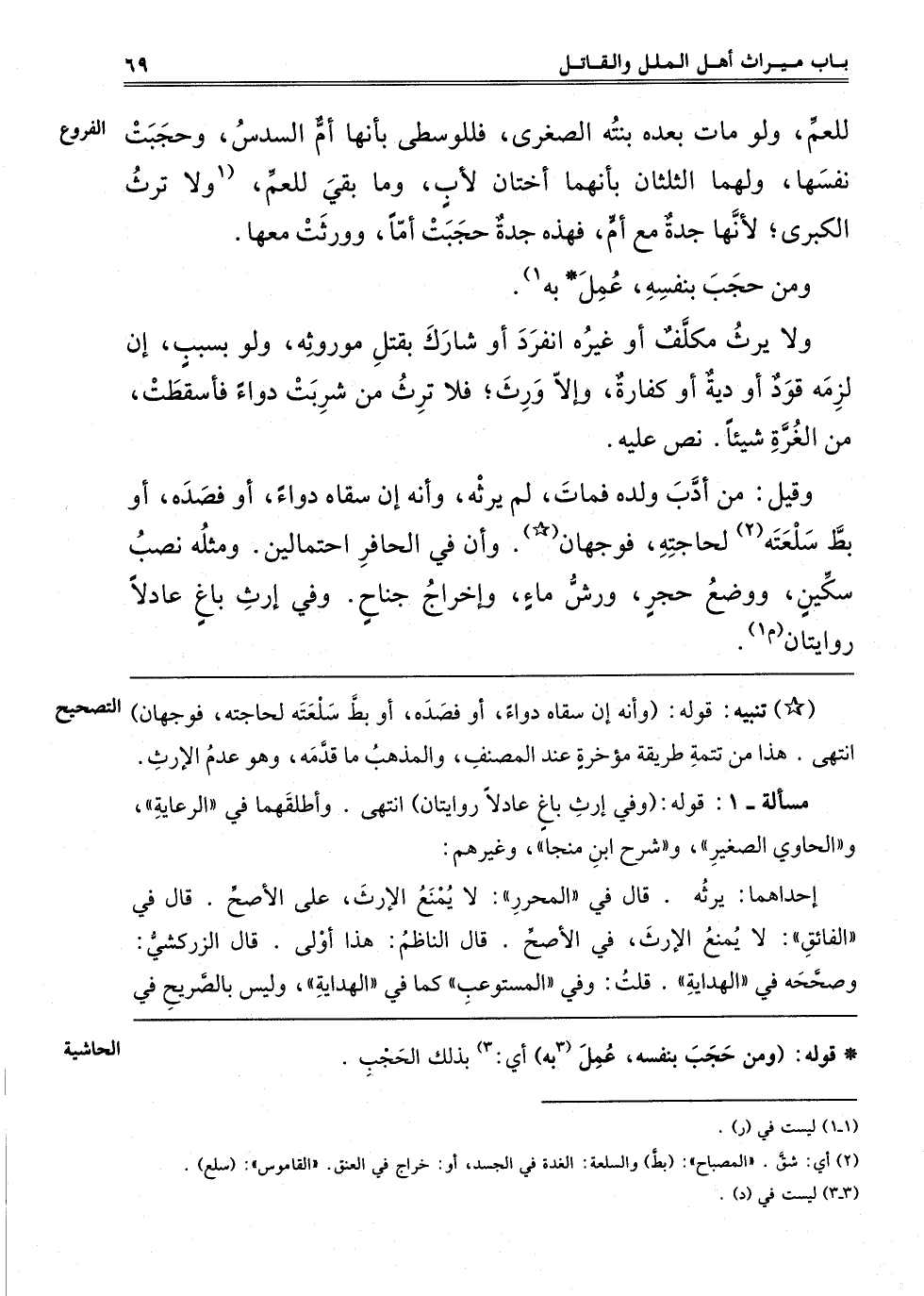 ـــــــــــــــــــــــــــــQتَنْبِيهٌ: قَوْلُهُ: "وَأَنَّهُ إنْ سَقَاهُ دَوَاءً أَوْ فَصَدَهُ أَوْ بَطَّ سِلْعَتَهُ لِحَاجَتِهِ فَوَجْهَانِ". انْتَهَى. هَذَا مِنْ تَتِمَّةِ طَرِيقَةٍ مُؤَخَّرَةٍ عِنْدَ الْمُصَنِّفِ، والمذهب ما قدمه، وهو عدم الإرث.