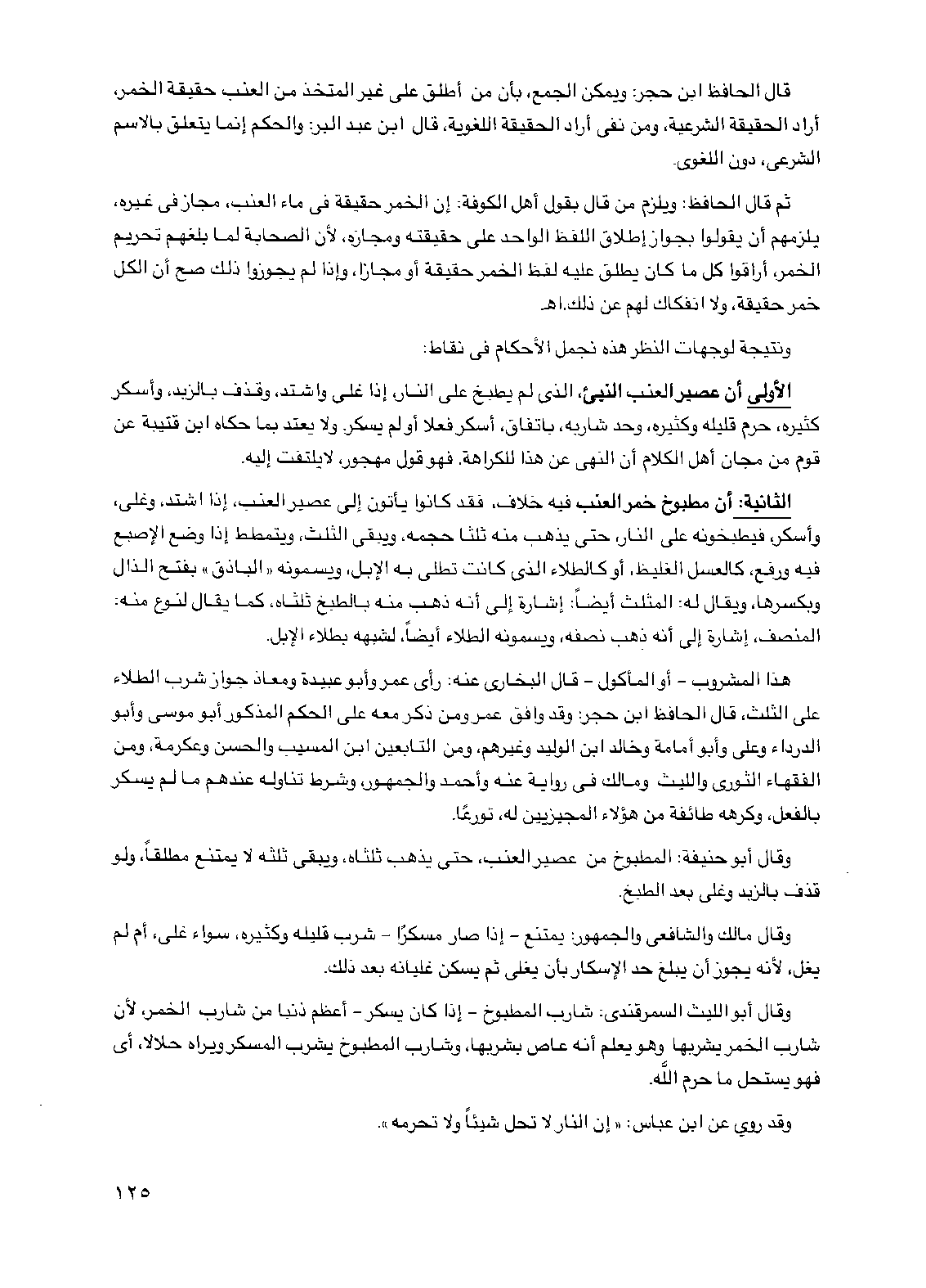 الثانية: أن مطبوخ خمر العنب فيه خلاف، فقد كانوا يأتون إلى عصير العنب، إذا اشتد، وغلي، وأسكر، فيطبخونه على النار، حتى يذهب منه ثلثا حجمه، ويبقى الثلث، ويتمطط إذا وضع الإصبع فيه ورفع، كالعسل الغليظ، أو كالطلاء الذي كانت تطلى به الإبل، ويسمونه "الباذق" بفتح الذال وبكسرها، ويقال له: المثلث أيضاً: إشارة إلى أنه ذهب منه بالطبخ ثلثاه، كما يقال لنوع منه: المنصف، إشارة إلى أنه ذهب نصفه، ويسمونه الطلاء أيضاً، لشبهه بطلاء الإبل.