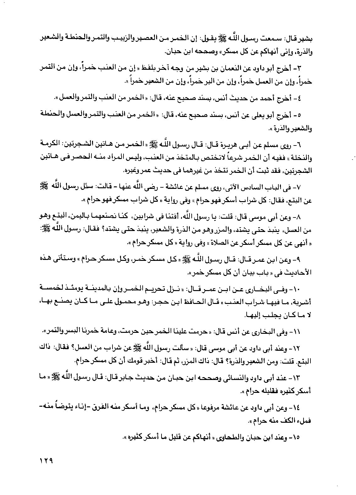 3 - أخرج أبو داود عن النعمان بن بشير من وجه آخر بلفظ "إن من العنب خمراً، وإن من التمر خمراً، وإن من العسل خمراً، وإن من البر خمراً، وإن من الشعير خمراً".