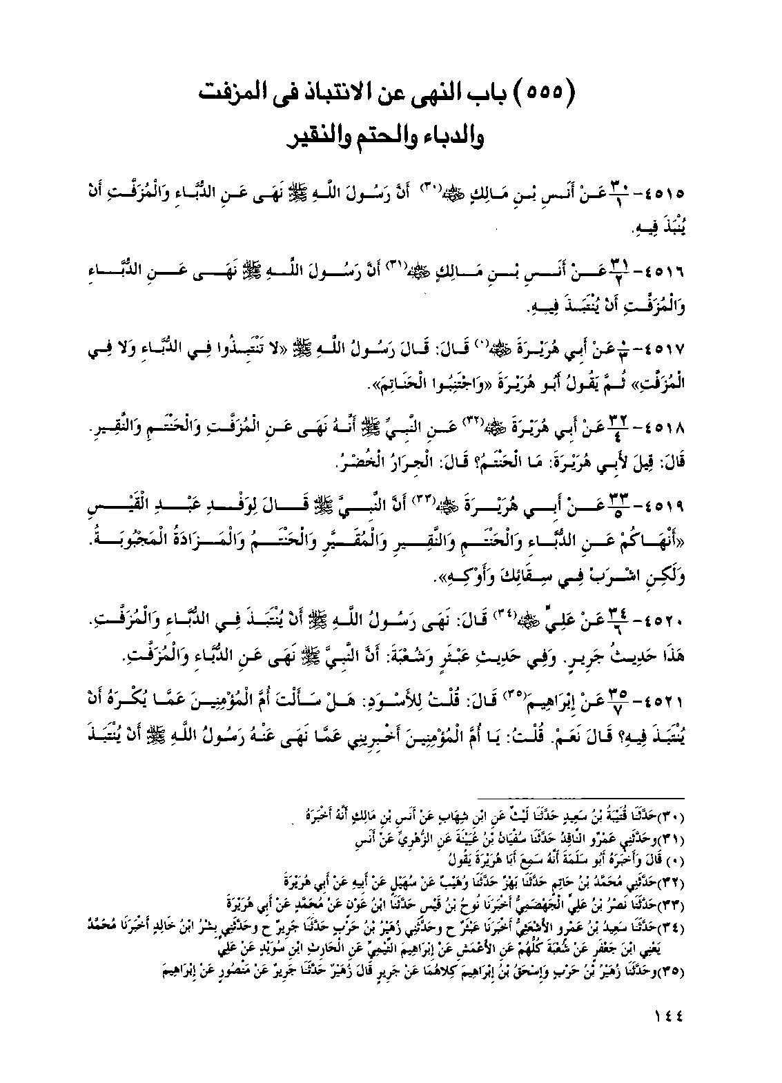 (555) باب النهي عن الانتباذ في المزفت والدباء والحتم والنقير