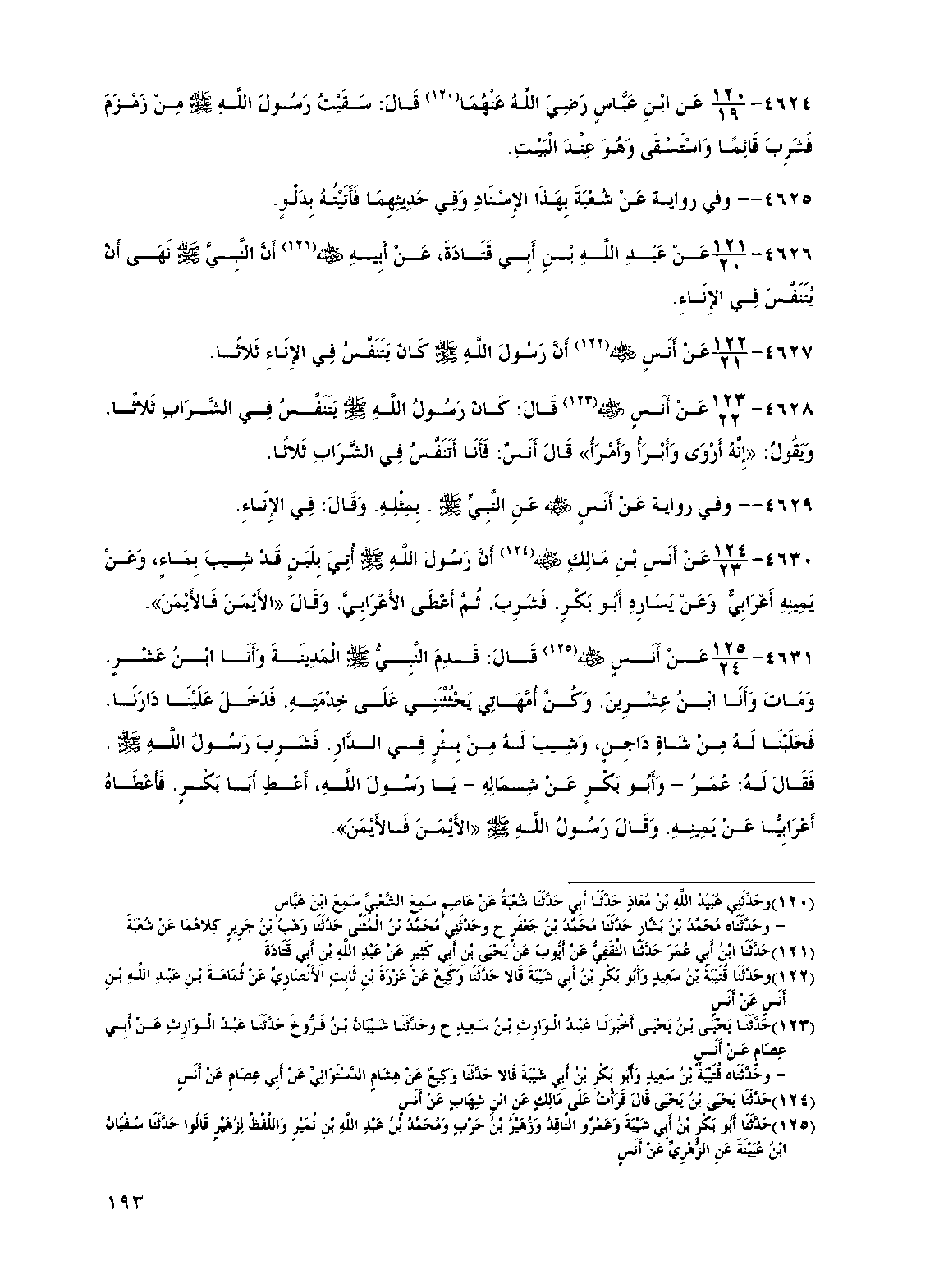 4624 - عن ابن عباس رضي الله عنهما قال: سقيت رسول الله صلى الله عليه وسلم من زمزم فشرب قائماً واستسقى وهو عند البيت.
