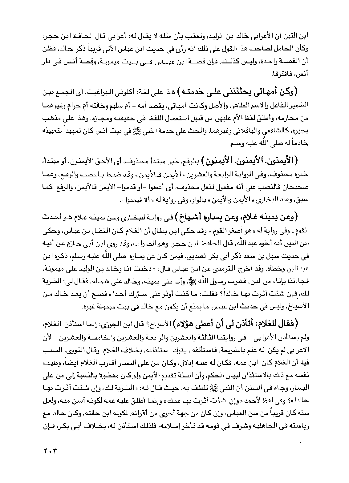 ابن التين أن الأعرابي خالد بن الوليد، وتعقب بأن مثله لا يقال له: أعرابي قال الحافظ ابن حجر: وكأن الحامل لصاحب هذا القول على ذلك أنه رأى في حديث ابن عباس الآتي قريباً ذكر خالد، فظن أن القصة واحدة، وليس كذلك، فإن قصة ابن عباس في بيت ميمونة، وقصة أنس في دار أنس، فافترقا.