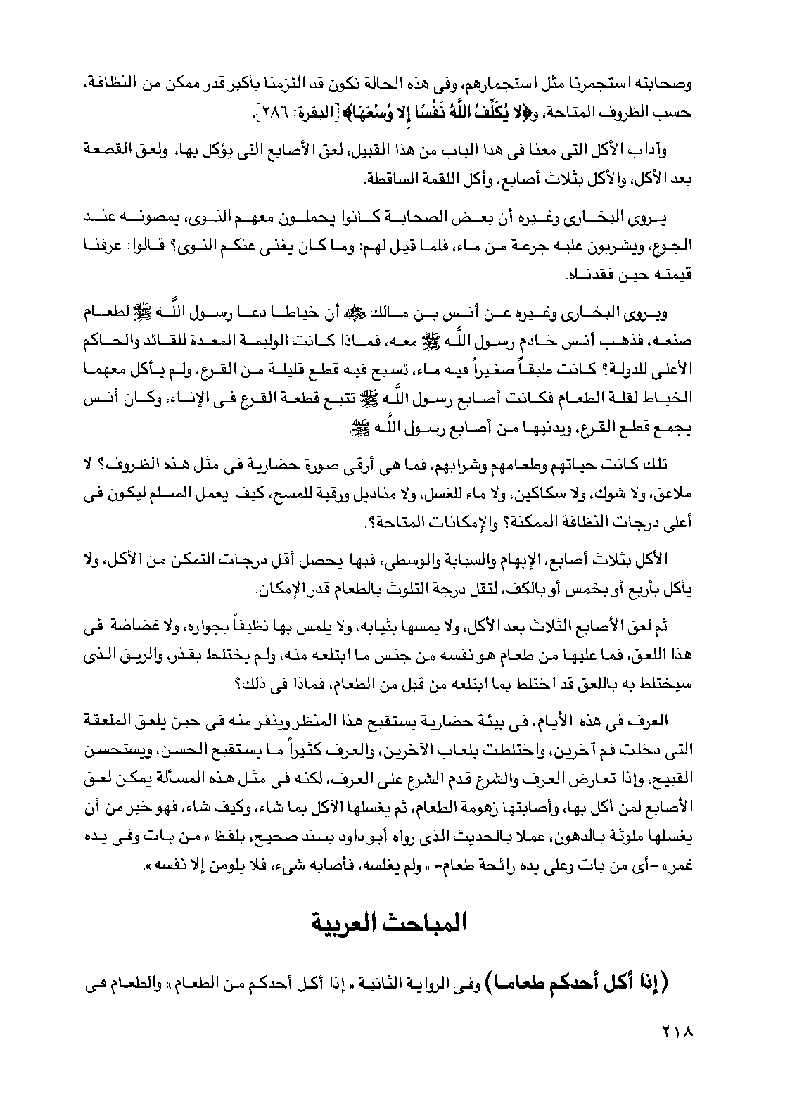 وآداب الأكل التي معنا في هذا الباب من هذا القبيل، لعق الأصابع التي يؤكل بها، ولعق القصعة بعد الأكل، والأكل بثلاث أصابع، وأكل اللقمة الساقطة.