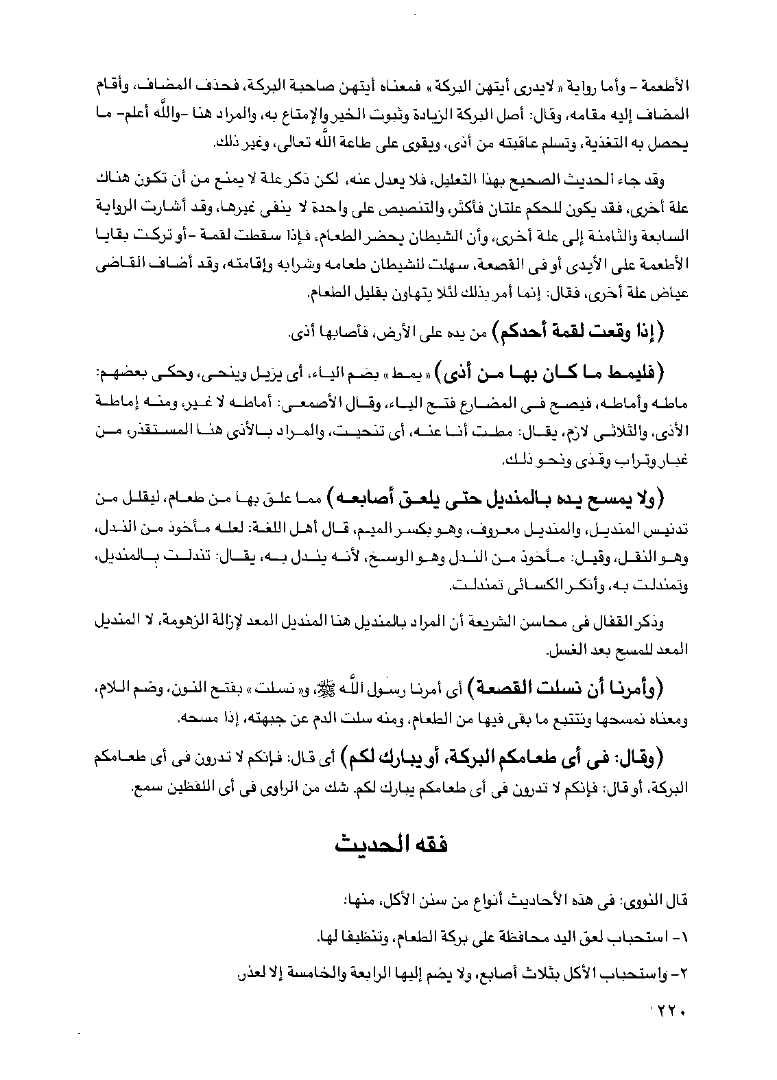 1 - استحباب لعق اليد محافظة على بركة الطعام، وتنظيفاً لها.