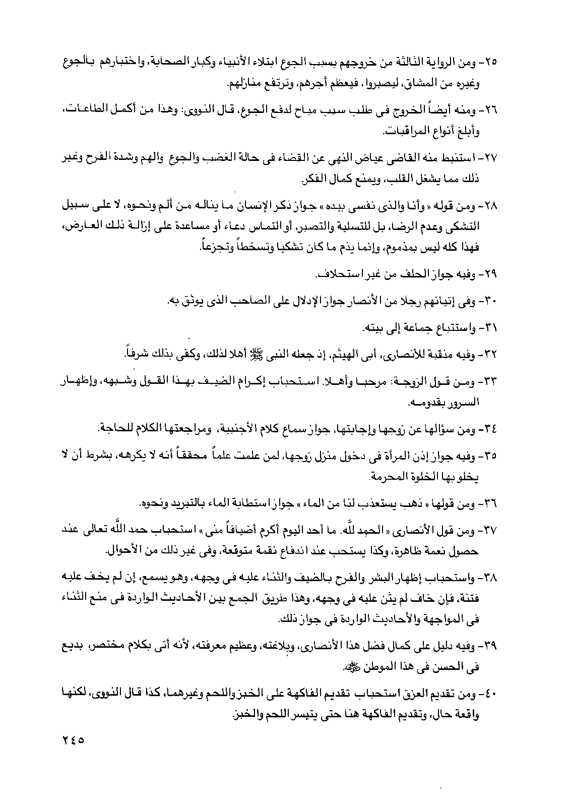37 - ومن قول الأنصاري "الحمد لله. ما أحد اليوم أكرم أضيافاً مني" استحباب حمد الله تعالى عند حصول نعمة ظاهرة، وكذا يستحب عند اندفاع نقمة متوقعة، وفي غير ذلك من الأحوال.