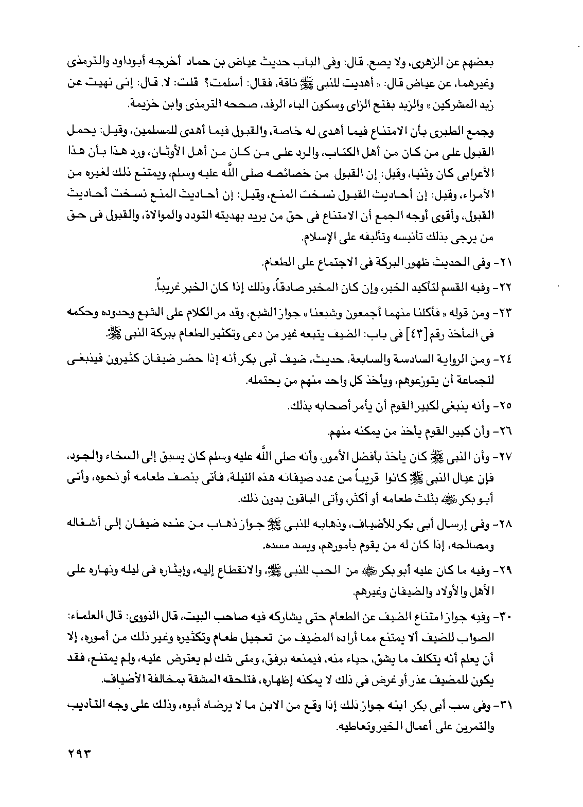 28 - وفي إرسال أبي بكر للأضياف، وذهابه للنبي صلى الله عليه وسلم جواز ذهاب من عنده ضيفان إلى أشغاله ومصالحه، إذا كان له من يقوم بأمورهم، ويسد مسده.