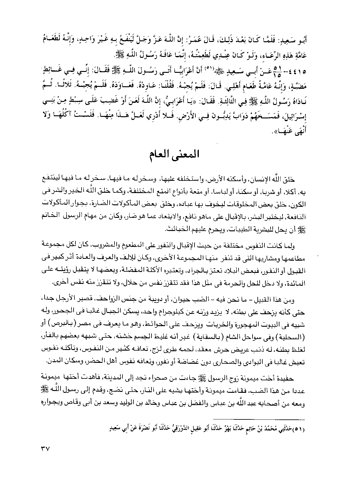 أبو سعيد: فلما كان بعد ذلك، قال عمر: إن الله عز وجل لينفع به غير واحد، وإنه لطعام عامة هذه الرعاء، ولو كان عندي لطعمته، إنما عافه رسول الله صلى الله عليه وسلم.