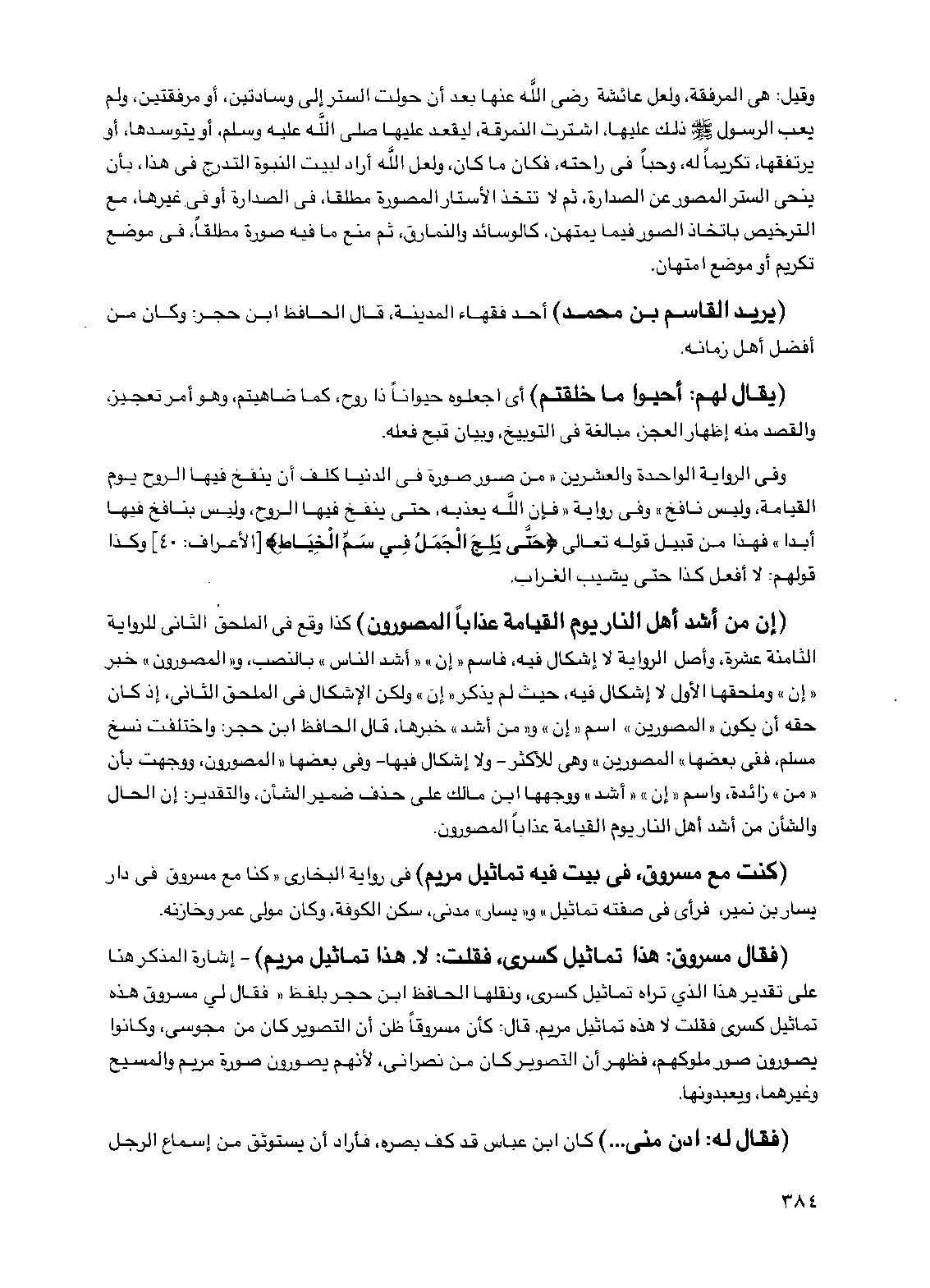 (كنت مع مسروق، في بيت فيه تماثيل مريم) في رواية البخاري "كنا مع مسروق في دار يسار بن نمير، فرأى في صفته تماثيل" و"يسار" مدني، سكن الكوفة، وكان مولى عمر وخازنه.