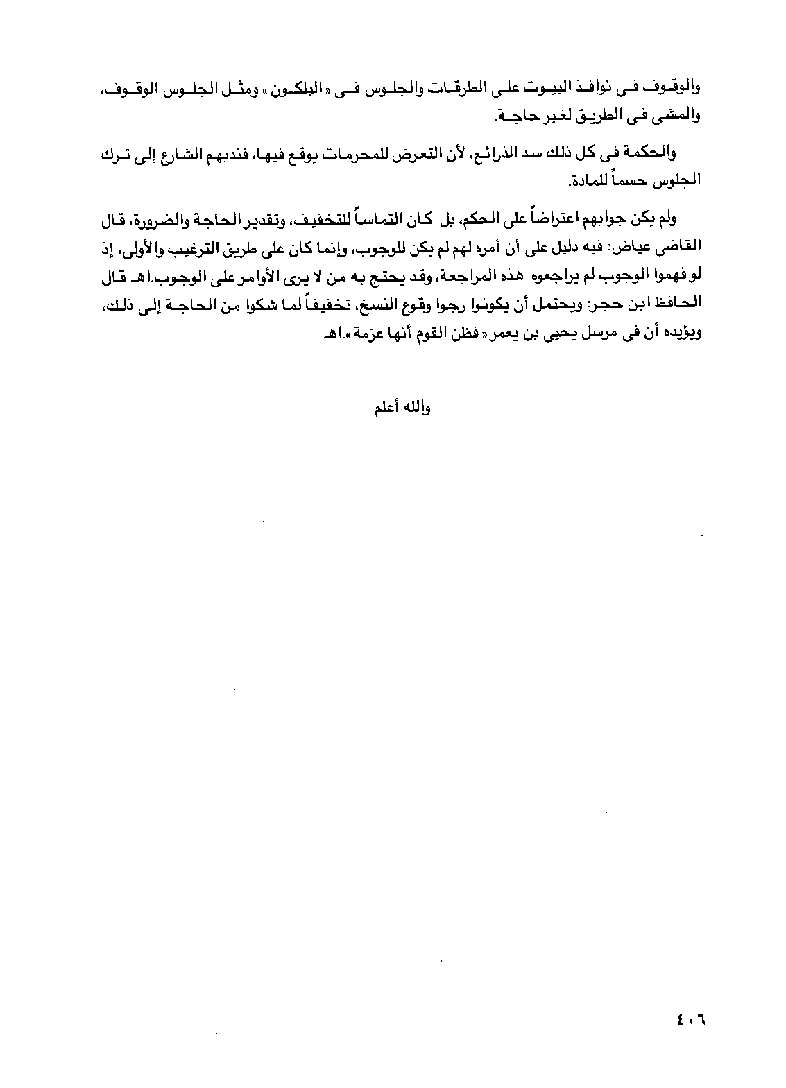 والوقوف في نوافذ البيوت على الطرقات والجلوس في "البلكون" ومثل الجلوس الوقوف، والمشي في الطريق لغير حاجة.