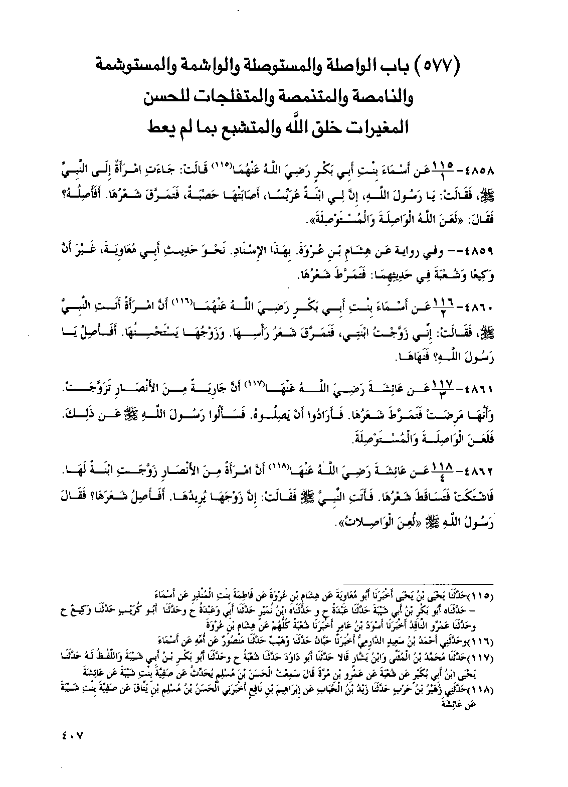 (577) باب الواصلة والمستوصلة والواشمة والمستوشمة والنامصة والمتنمصة والمتفلجات للحسن المغيرات خلق الله والمتشبع بما لم يعط