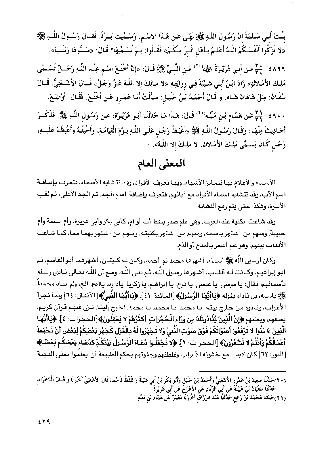 الأسماء والأعلام بها تتمايز الأشياء، وبها تعرف الأفراد، وقد تتشابه الأسماء، فتعرف بإضافة اسم الأب، وقد تتشابه أسماء الأفراد مع آبائهم، فتعرف بإضافة اسم الجد، ثم الجد الأعلى، ثم لقب الأسرة، وهكذا حتى يتم رفع التشابه.
