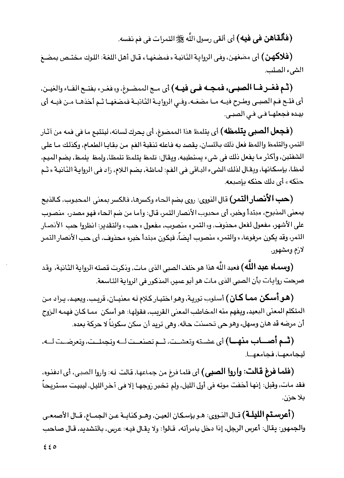 (فجعل الصبي يتلمظه) أي يتلمظ هذا الممضوغ، أي يحرك لسانه، ليتتبع ما في فمه من آثار التمر، والتلمظ واللمظ فعل ذلك باللسان، يقصد به فاعله تنقية الفم من بقايا الطعام، وكذلك ما على الشفتين، وأكثر ما يفعل ذلك في شيء يستطيبه، ويقال: تلمظ يتلمظ تلمظاً، ولمظ يلمظ، بضم الميم، لمظاً، بإسكانها، ويقال لذلك الشيء الباقي في الفم: لماظة، بضم اللام، زاد في الرواية الثانية "ثم حنكه" أي دلك حنكه بإصبعه.
