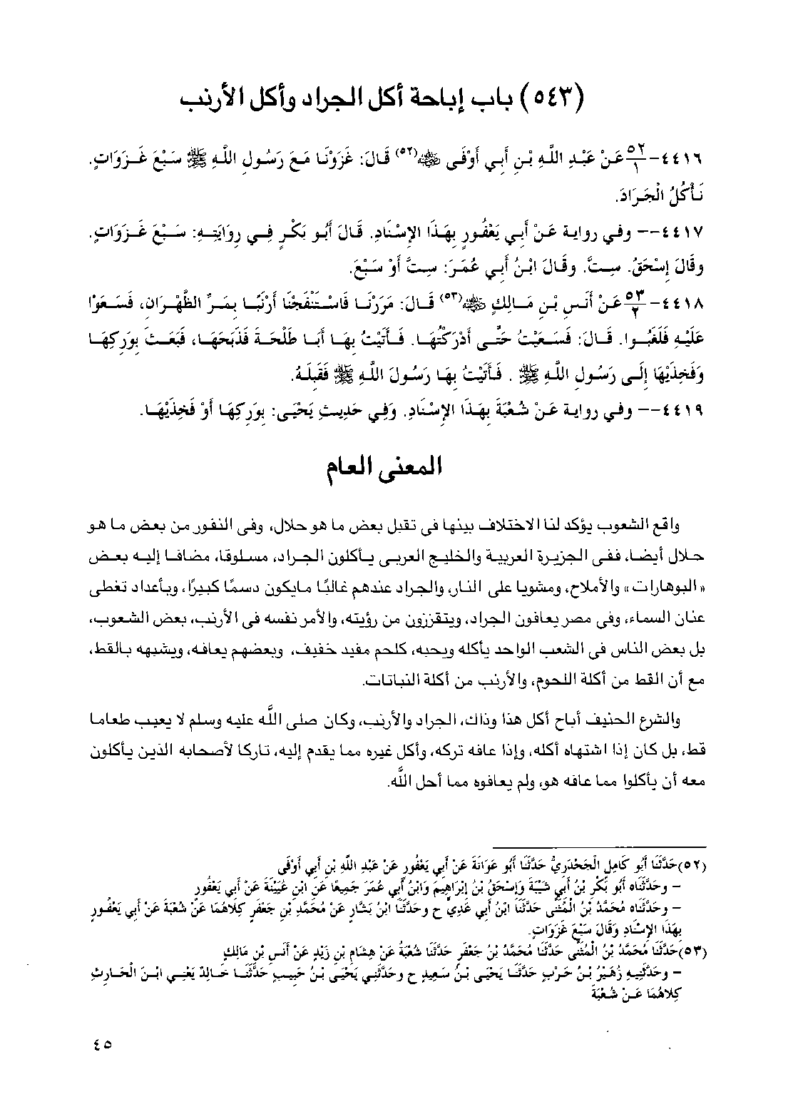 (543) باب إباحة أكل الجراد وأكل الأرنب