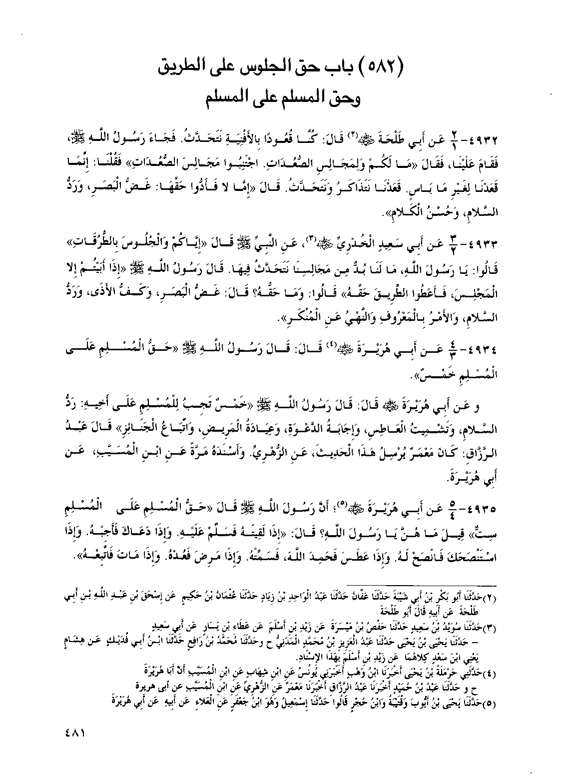 (582) باب حق الجلوس على الطريق وحق المسلم على المسلم