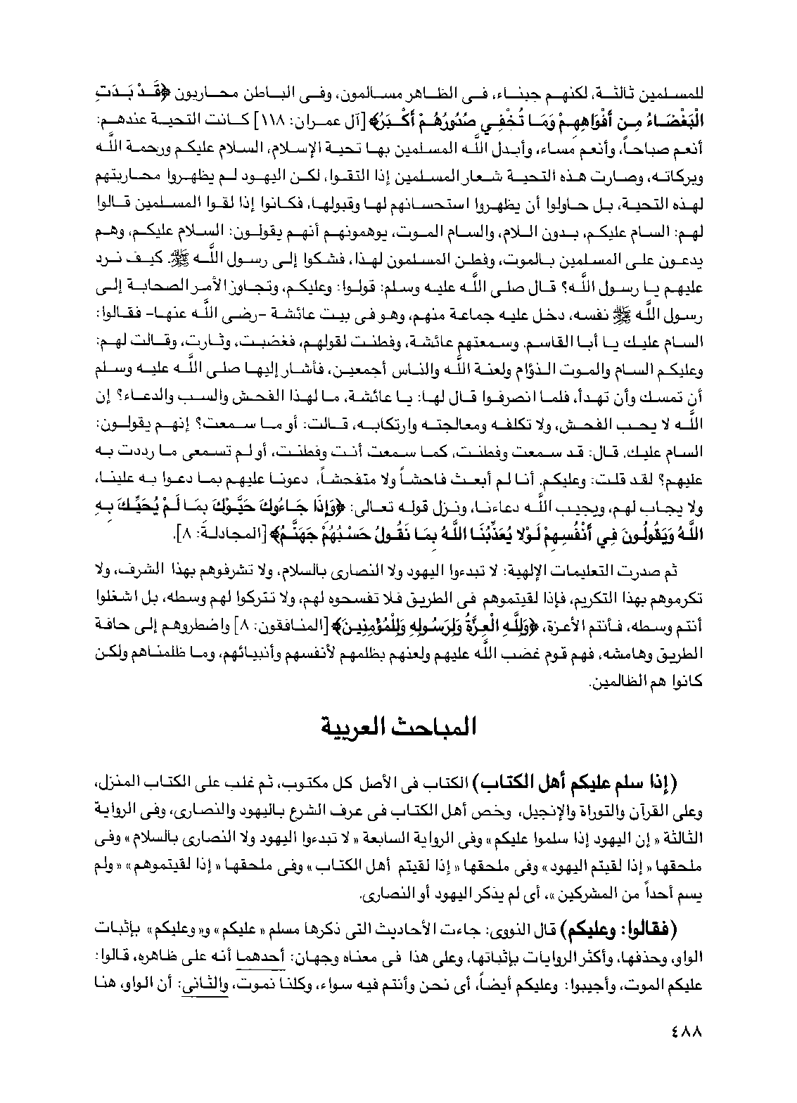(إذا سلم عليكم أهل الكتاب) الكتاب في الأصل كل مكتوب، ثم غلب على الكتاب المنزل، وعلى القرآن والتوراة والإنجيل، وخص أهل الكتاب في عرف الشرع باليهود والنصارى، وفي الرواية الثالثة "إن اليهود إذا سلموا عليكم" وفي الرواية السابعة "لا تبدءوا اليهود ولا النصارى بالسلام" وفي ملحقها "إذا لقيتم اليهود" وفي ملحقها "إذا لقيتم أهل الكتاب" وفي ملحقها "إذا لقيتموهم" "ولم يسم أحداً من المشركين"، أي لم يذكر اليهود أو النصارى.