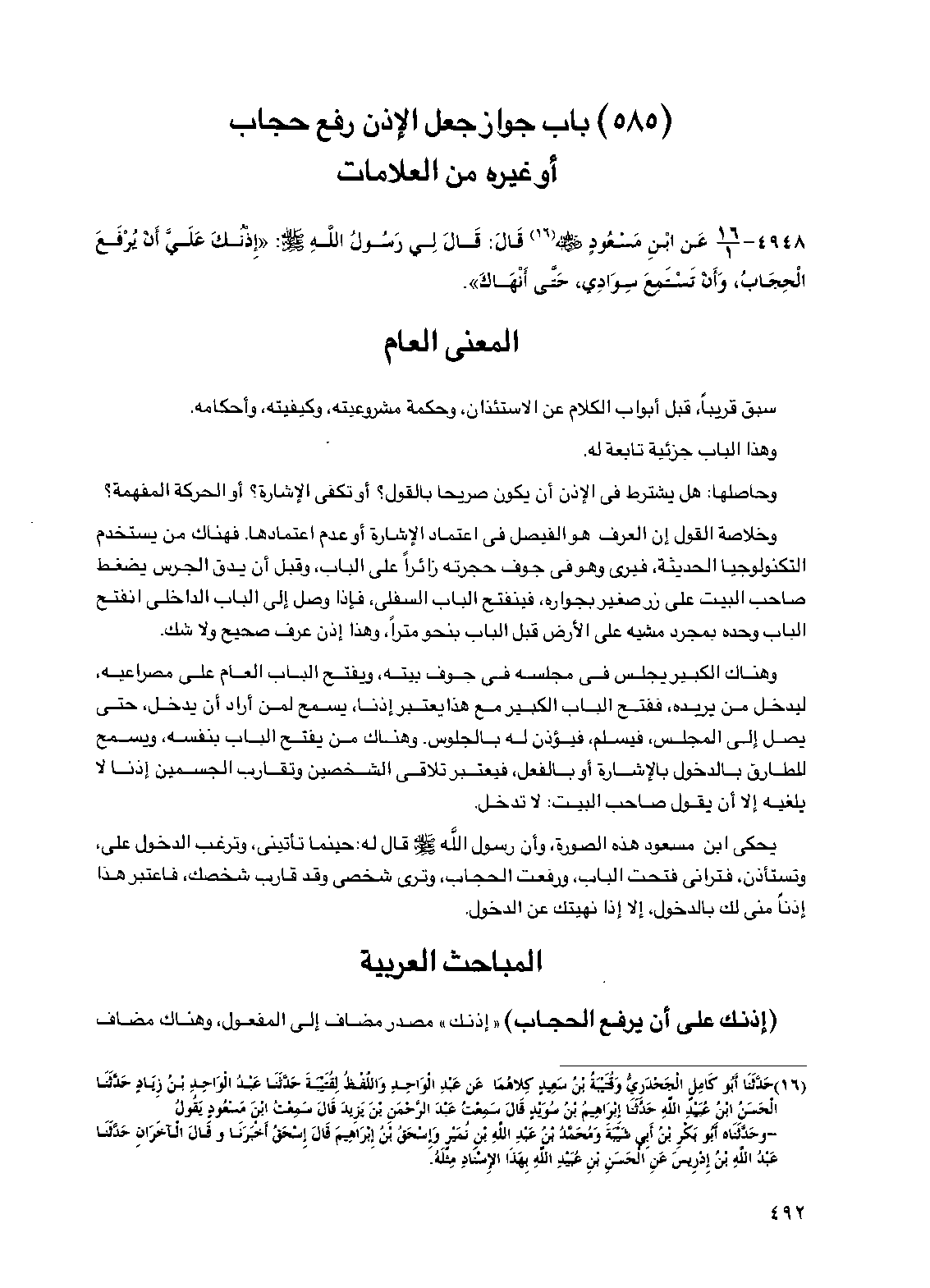 (585) باب جواز جعل الإذن رفع حجاب أو غيره من العلامات