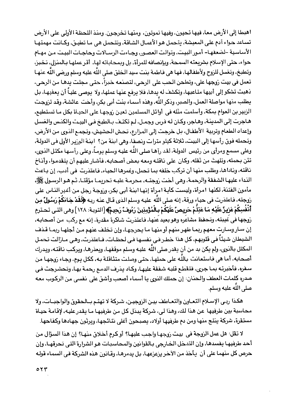 لا تقل: هل عمل الزوجة في بيت زوجها واجب عليها؟ أو كرم أخلاق منها؟ إن هذا السؤال من أحد طرفيها يفسدها، وإن التدخل الخارجي بالقوانين والمحاسبات هو الشرارة التي تحرقها، وإن حرص كل منهما على أن يأخذ من الآخر يزعزعها، بل يدمرها، وقانون هذه الشركة في السماء قوله