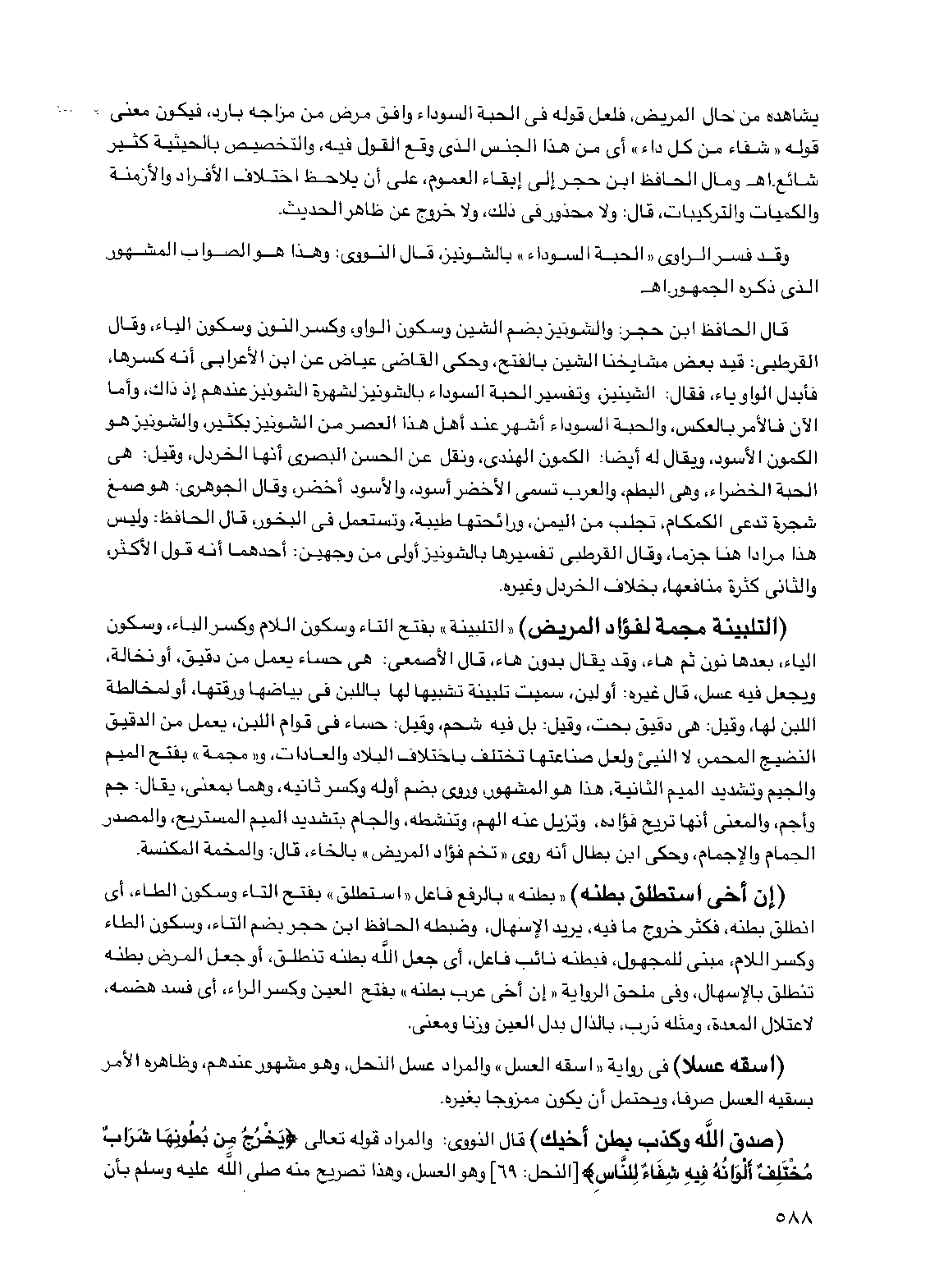 (صدق الله وكذب بطن أخيك) قال النووي: والمراد قوله تعالى (يخرج من بطونها شراب مختلف ألوانه فيه شفاء للناس) [النحل: 69] وهو العسل، وهذا تصريح منه صلى الله عليه وسلم بأن