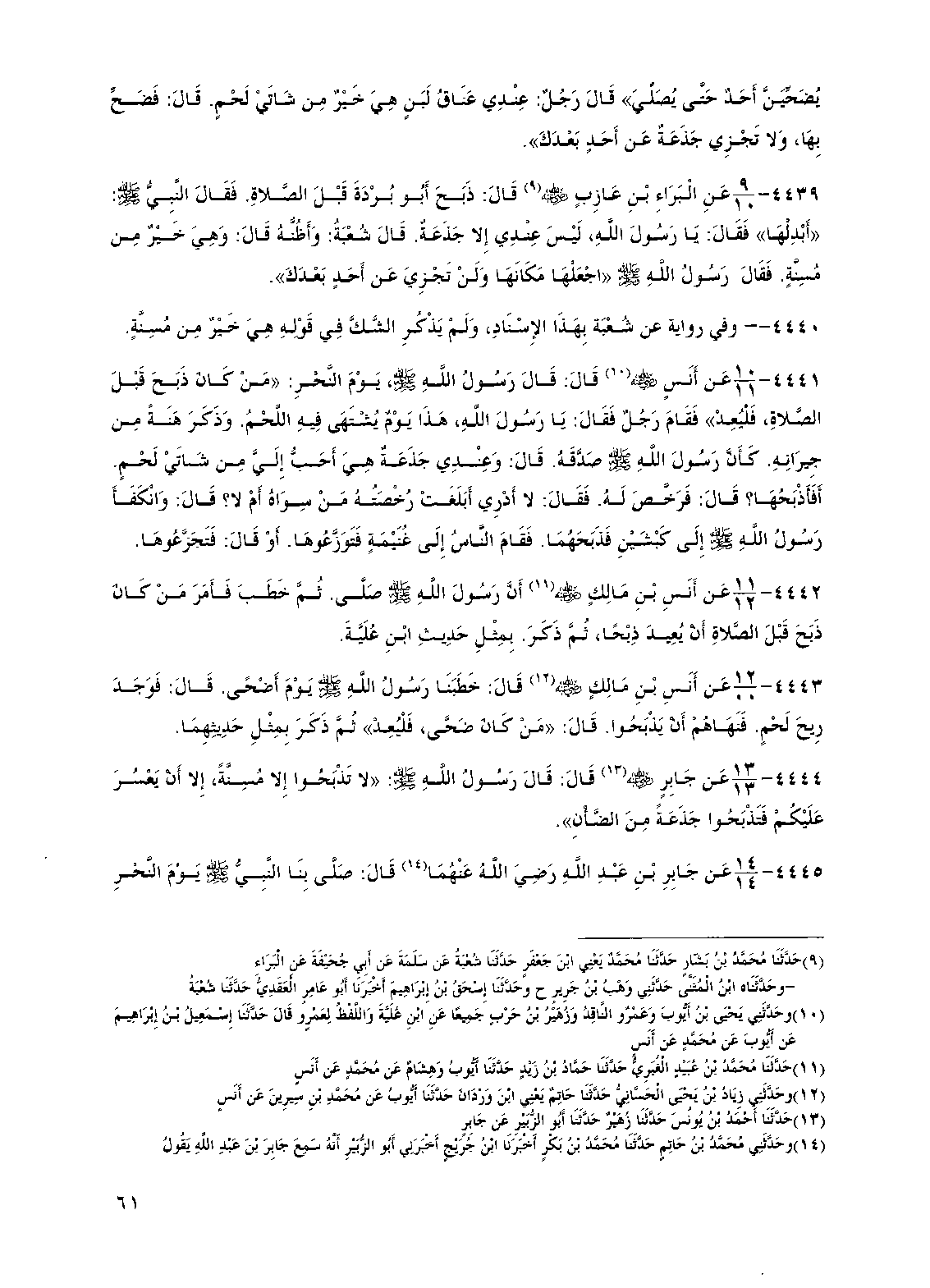 4445 - عن جابر بن عبد الله رضي الله عنهما قال: صلى بنا النبي صلى الله عليه وسلم يوم النحر