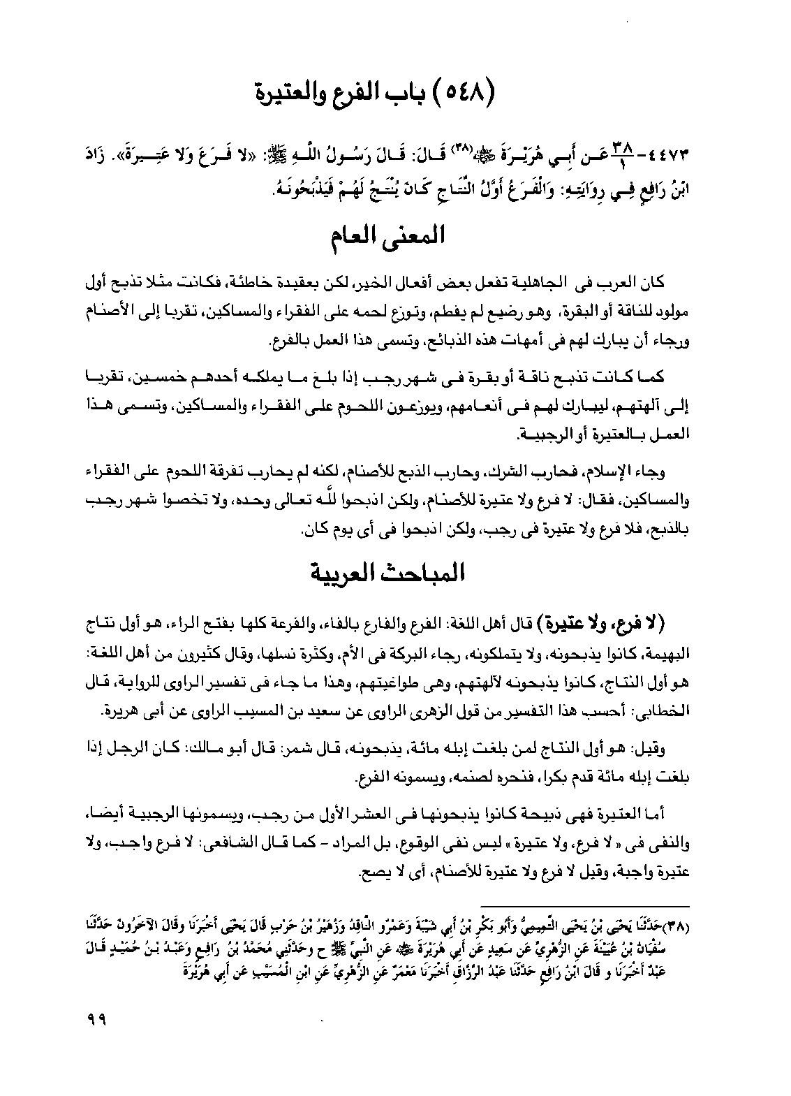 (548) باب الفرع والعتيرة