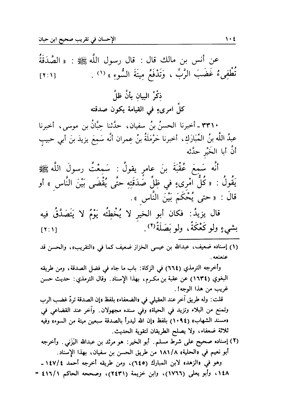 ذِكْرُ الْبَيَانِ بِأَنَّ ظِلَّ كُلِّ امْرِئٍ فِي الْقِيَامَةِ يَكُونُ صَدَقَتَهُ