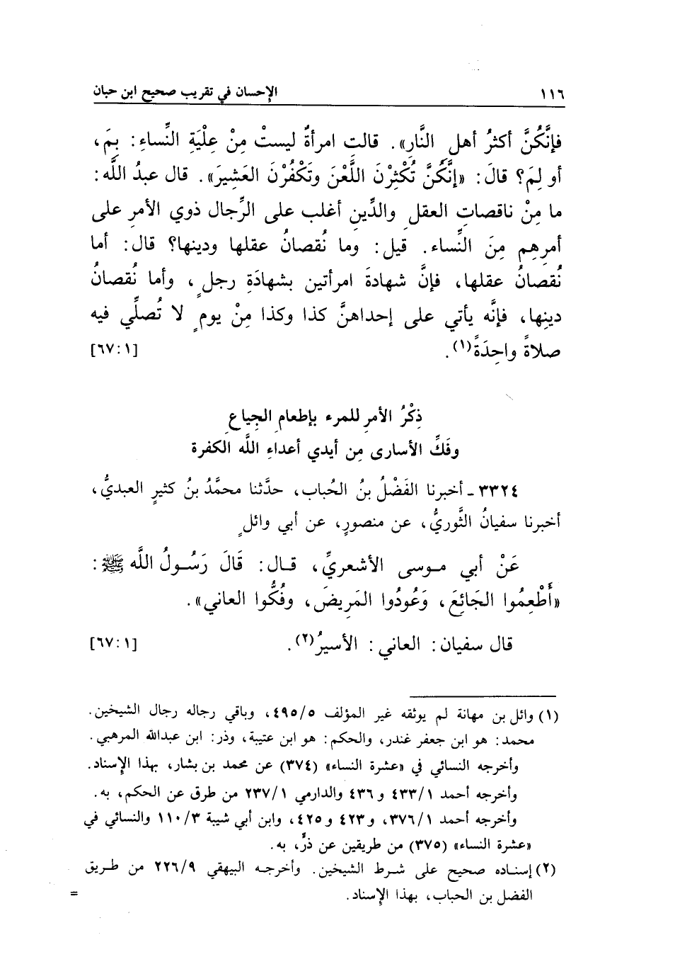 ذِكْرُ الْأَمْرِ لِلْمَرْءِ بِإِطْعَامِ الْجِيَاعِ وَفُكِّ الْأُسَارَى مِنْ أَيْدِي أَعْدَاءِ اللَّهِ الْكَفَرَةِ