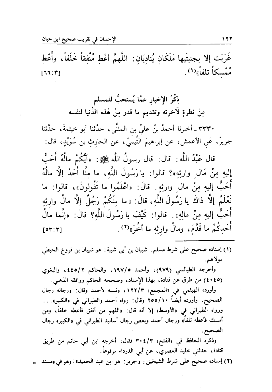 ذِكْرُ الْإِخْبَارِ عَمَّا يُسْتَحَبُّ لِلْمُسْلِمِ مِنْ نَظْرَةٍ لِآخِرَتِهِ وَتَقْدِيمِ مَا قَدَرَ مِنْ هَذِهِ الدُّنْيَا لِنَفْسِهِ