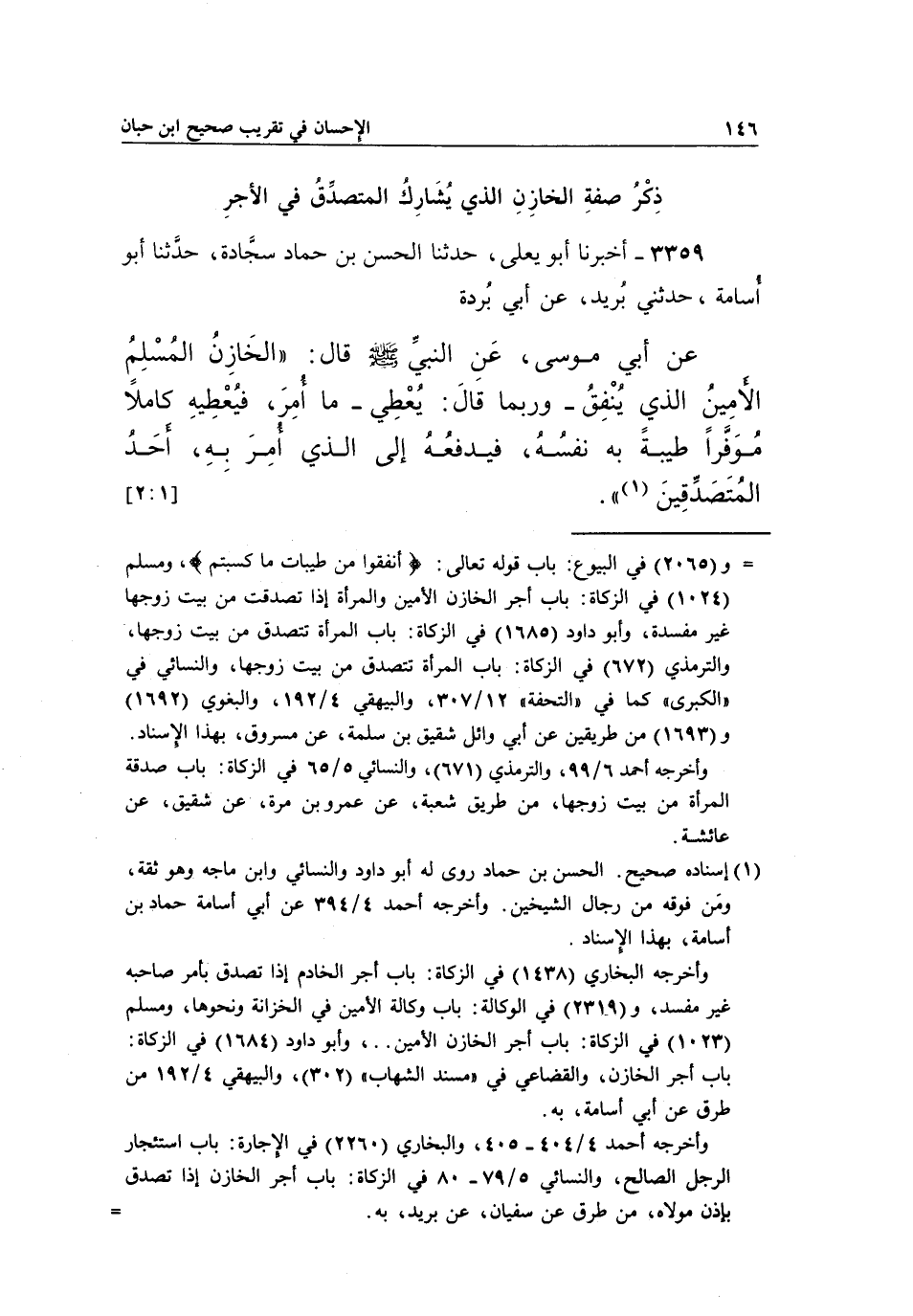 ذِكْرُ صِفَةِ الْخَازِنِ الَّذِي يُشَارِكُ الْمُتَصَدِّقَ فِي الْأَجْرِ