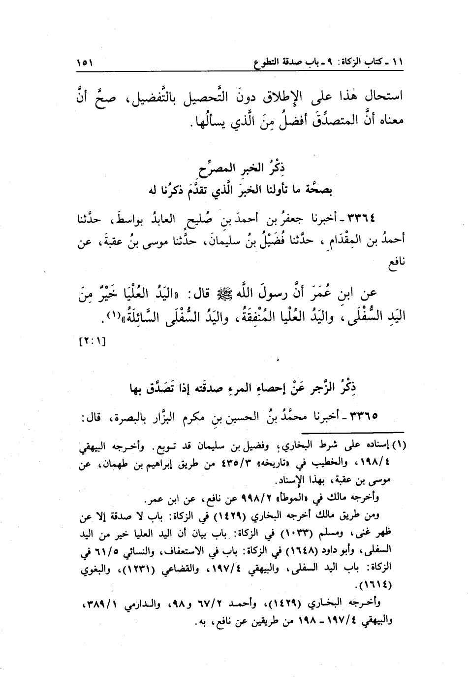 3365 - أَخْبَرَنَا مُحَمَّدُ بْنُ الْحُسَيْنِ بْنِ مُكْرَمٍ الْبَزَّارُ بالبصرة، قال: ذِكْرُ الزَّجْرِ عَنْ إِحْصَاءِ الْمَرْءِ صَدَقَتَهُ إِذَا تَصَدَّقَ بِهَا