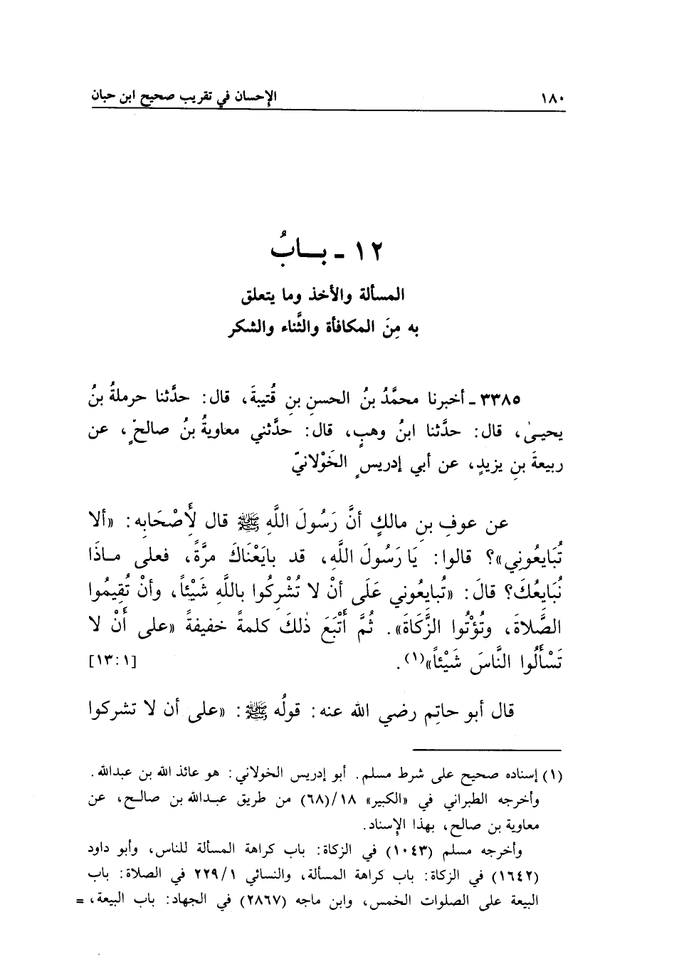 12 - بَابُ الْمَسْأَلَةِ وَالْأَخْذِ وَمَا يَتَعَلَّقُ بِهِ مِنَ الْمُكَافَأَةِ وَالثَّنَاءِ وَالشُّكْرِ