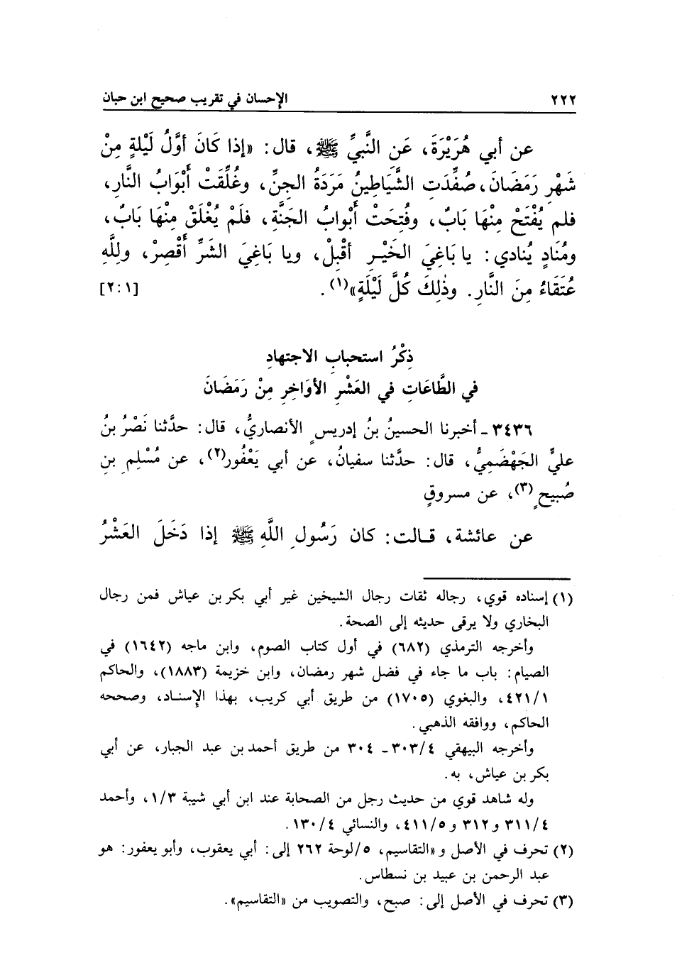 ذِكْرُ اسْتِحْبَابِ الِاجْتِهَادِ فِي الطَّاعَاتِ فِي الْعَشْرِ الْأَوَاخِرِ مِنْ رَمَضَانَ