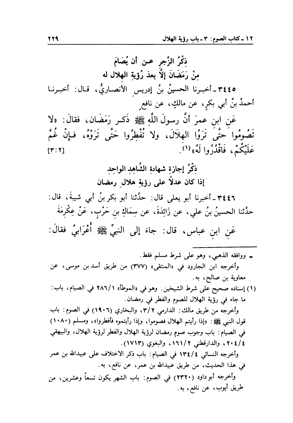 عَنِ ابْنِ عَبَّاسٍ، قَالَ: جَاءَ إِلَى النَّبِيِّ صَلَّى اللَّهُ عَلَيْهِ وَسَلَّمَ أعرابي فقال: ذِكْرُ إِجَازَةِ شَهَادَةِ الشَّاهِدِ الْوَاحِدِ إِذَا كَانَ عَدْلًا عَلَى رُؤْيَةِ هِلَالِ رَمَضَانَ