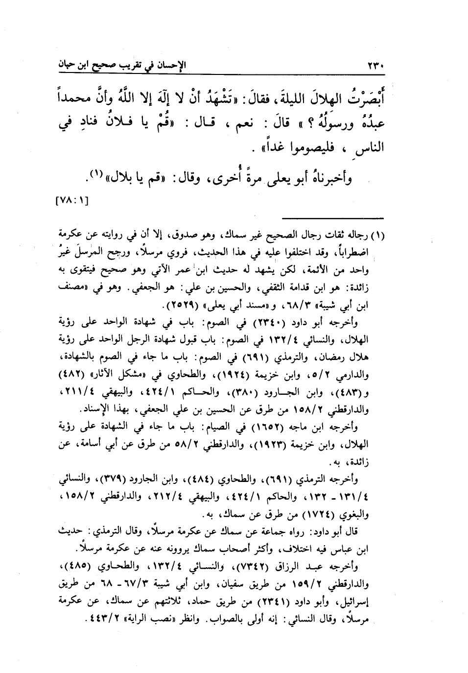 وأخرجه ابن ماجه "1652" في الصيام: باب ما جاء في الشهادة على رؤية الهلال، وابن خزيمة "1923"، والدارقطني 2/58 من طرق عن أبي أسامة، عن زائدة، به.