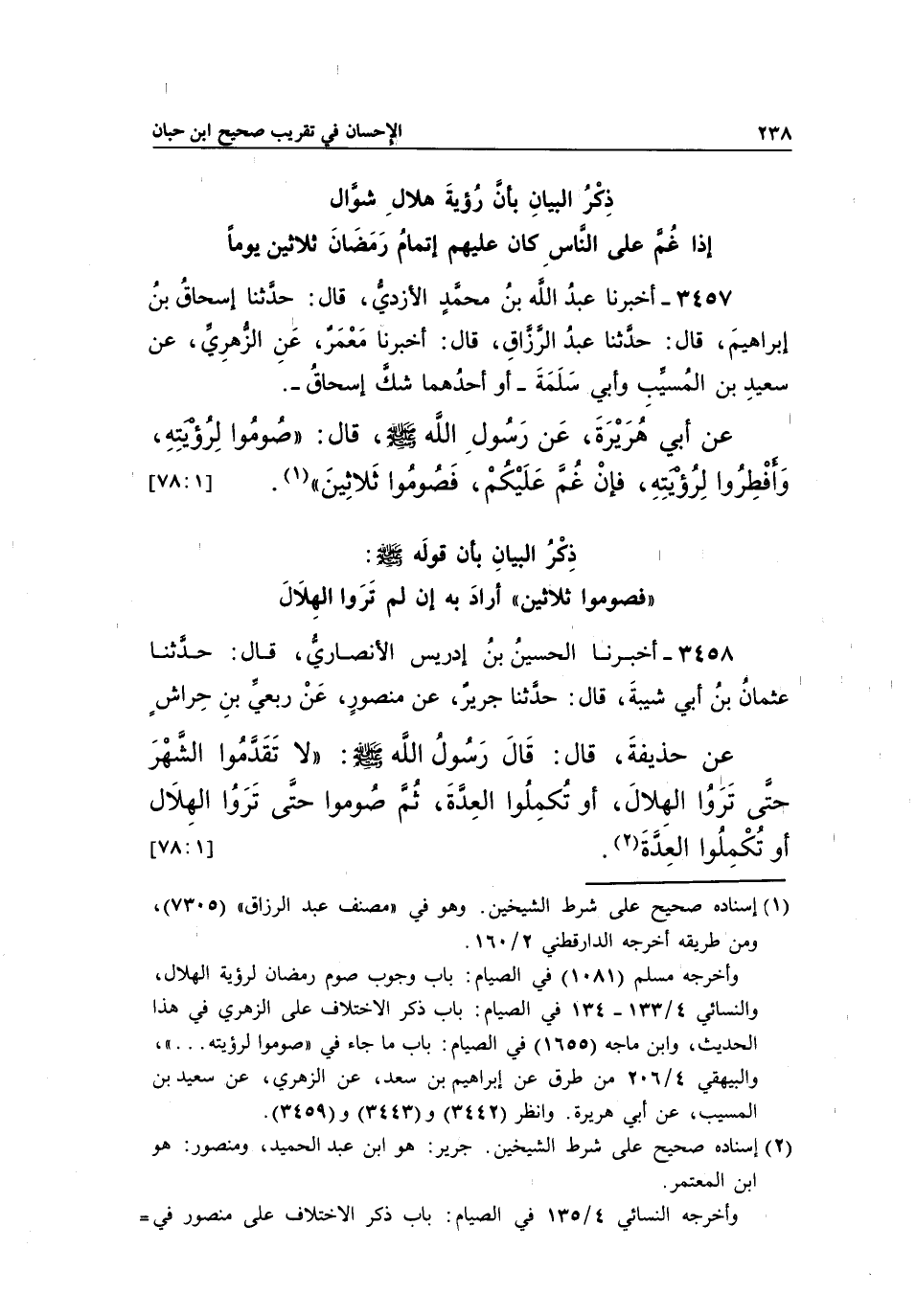 عَنْ حُذَيْفَةَ، قَالَ: قَالَ رَسُولُ اللَّهِ صَلَّى اللَّهُ عَلَيْهِ وَسَلَّمَ: "لَا تَقَدَّمُوا الشَّهْرَ حَتَّى تَرَوَا الْهِلَالَ، أَوْ تُكْمِلُوا الْعِدَّةَ، ثُمَّ صُومُوا حَتَّى تَرَوَا الْهِلَالَ أَوْ تُكْمِلُوا الْعِدَّةَ" (1) .