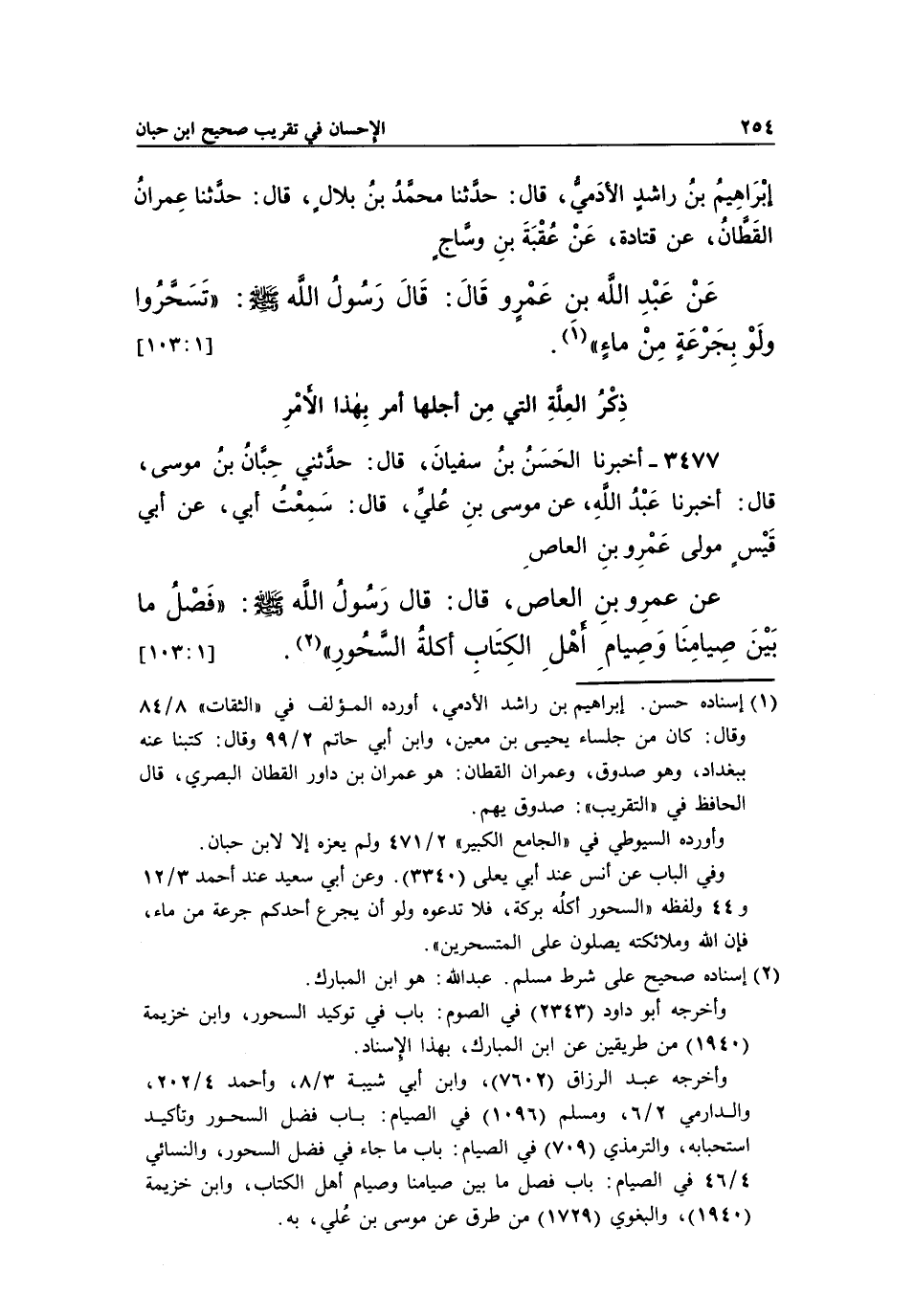 وأخرجه أبو داود "2343" في الصوم: باب في توكيد السحور، ابن خزيمة "1940" من طريقين عن ابن المبارك، بهذا الإسناد.