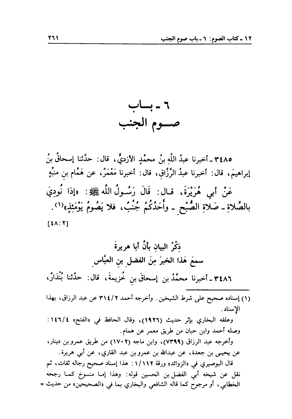 3485 - أَخْبَرَنَا عَبْدُ اللَّهِ بْنُ مُحَمَّدٍ الْأَزْدِيُّ، قَالَ: حَدَّثَنَا إِسْحَاقُ بْنُ إِبْرَاهِيمَ، قَالَ: أَخْبَرَنَا عَبْدُ الرَّزَّاقِ، قَالَ: أَخْبَرَنَا مَعْمَرٌ، عَنْ هَمَّامِ بْنِ مُنَبِّهٍ