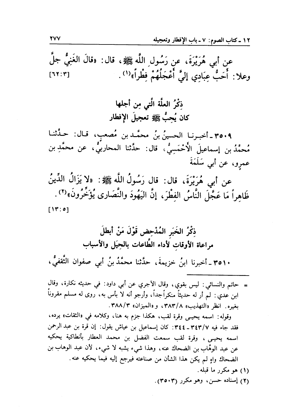[3510] أَخْبَرَنَا ابْنُ خُزَيْمَةَ، حَدَّثَنَا مُحَمَّدُ بْنُ أَبِي صَفْوَانَ الثَّقَفِيُّ،