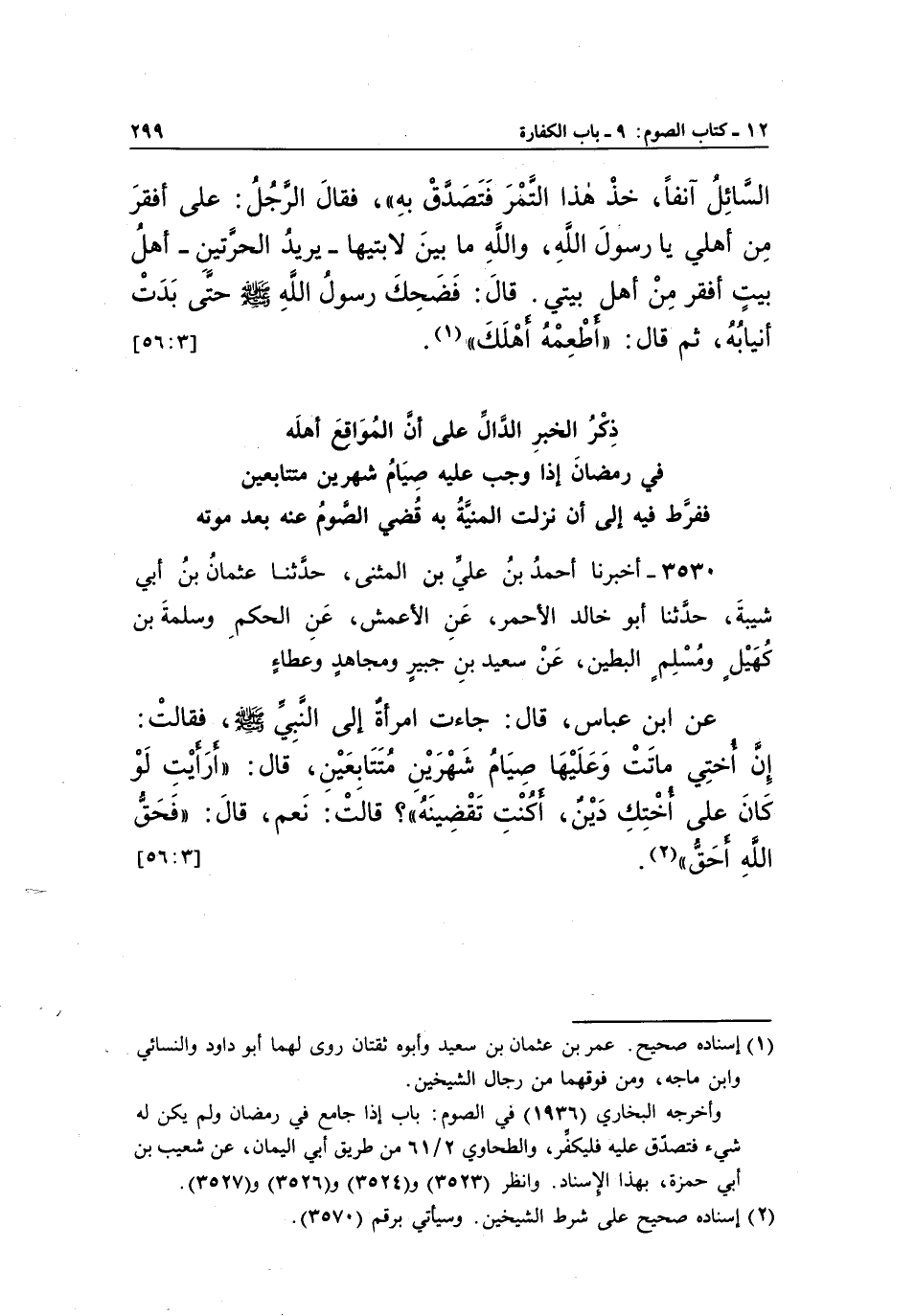 3530 - أَخْبَرَنَا أَحْمَدُ بْنُ عَلِيِّ بْنِ الْمُثَنَّى، حَدَّثَنَا عُثْمَانُ بْنُ أَبِي شَيْبَةَ، حَدَّثَنَا أَبُو خَالِدٍ الْأَحْمَرُ، عَنِ الْأَعْمَشِ، عَنِ الْحَكَمِ وَسَلَمَةَ بْنِ كُهَيْلٍ وَمُسْلِمٍ الْبَطِينِ، عَنْ سَعِيدِ بْنِ جُبَيْرٍ وَمُجَاهِدٍ وَعَطَاءٍ