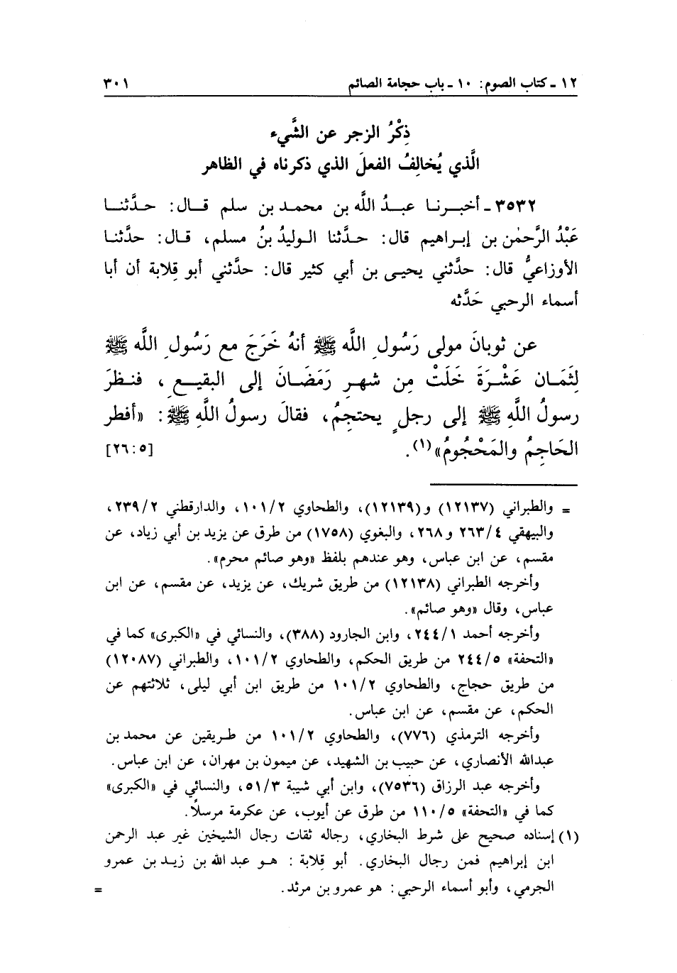 3532 - أَخْبَرَنَا عَبْدُ اللَّهِ بْنُ مُحَمَّدِ بْنِ سَلْمٍ، قَالَ: حَدَّثَنَا عَبْدُ الرَّحْمَنِ بْنُ إِبْرَاهِيمَ، قَالَ: حَدَّثَنَا الْوَلِيدُ بْنُ مُسْلِمٍ، قَالَ: حَدَّثَنَا الْأَوْزَاعِيُّ، قَالَ: حَدَّثَنِي يَحْيَى بْنُ أَبِي كَثِيرٍ، قَالَ: حَدَّثَنِي أَبُو قِلَابَةَ أَنَّ أَبَا أَسْمَاءَ الرَّحَبِيَّ حَدَّثَهُ