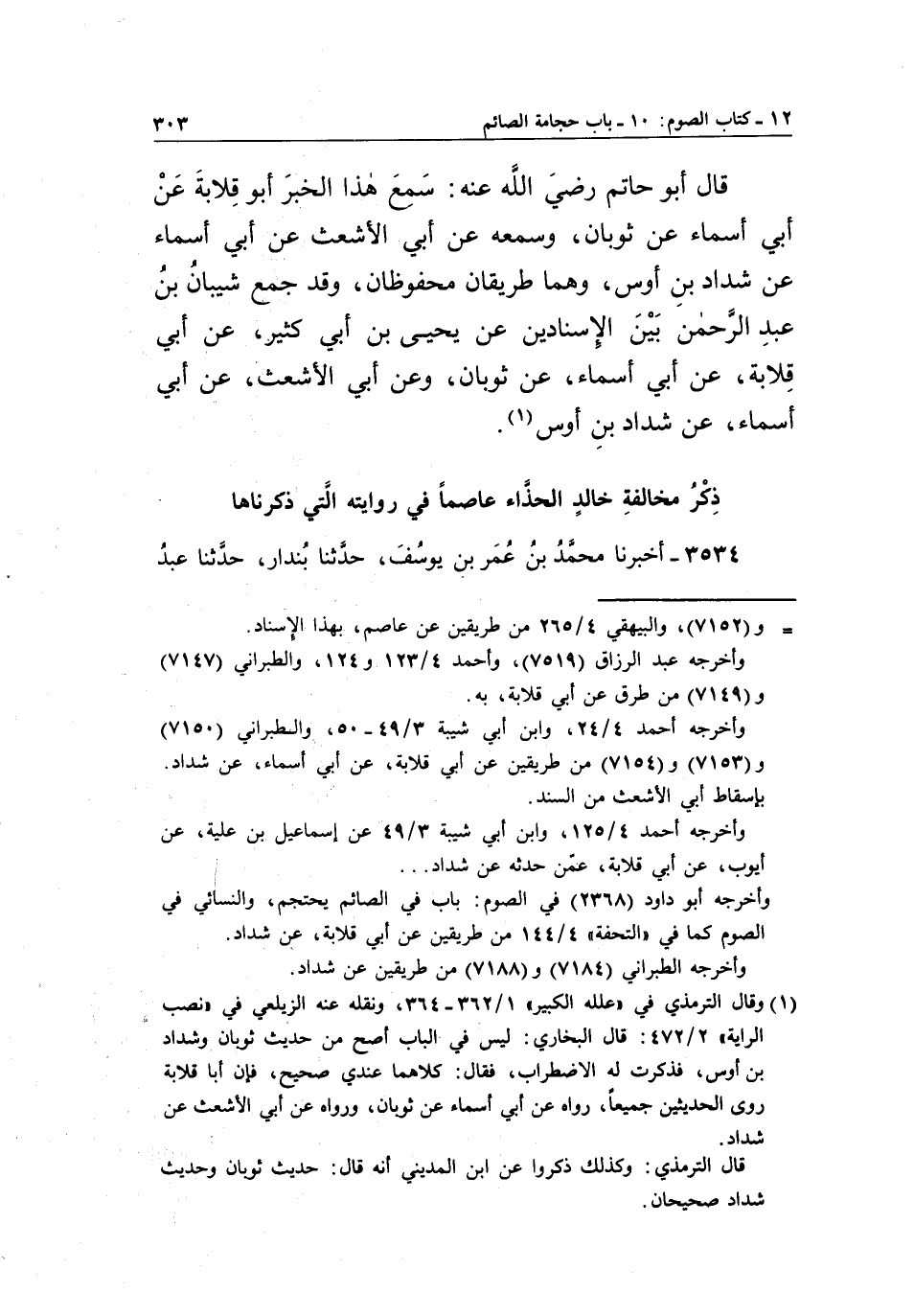 (1) وقال الترمذي في "علله الكبير" 1/362-364، ونقله عنه الزيلعي في "نصب الراية" 2/472: قال البخاري: ليس في الباب أصح من حديث ثوبان وشداد بن أوس، فذكرت له الإضطراب، فقال: كلاهما عندي صحيح، فإن أبا قلابة روى الحديثين جميعا، رواه عن أبي أسماء عن ثوبان، ورواه عن أبي الأشعث عن شداد.