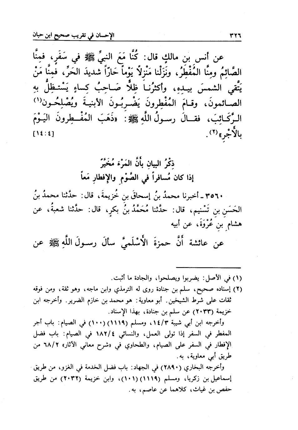 ذِكْرُ الْبَيَانِ بِأَنَّ الْمَرْءَ مُخَيَّرٌ إِذَا كَانَ مُسَافِرًا فِي الصَّوْمِ وَالْإِفْطَارِ مَعًا