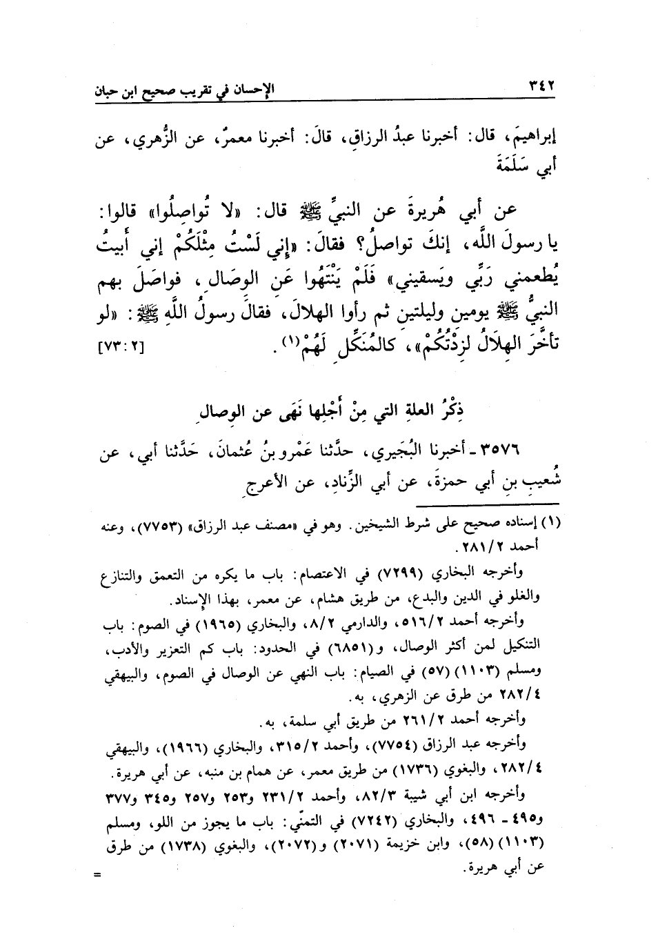 3576 - أَخْبَرَنَا الْبُجَيْرِيُّ، حَدَّثَنَا عَمْرُو بْنُ عُثْمَانَ، حَدَّثَنَا أَبِي، عَنْ شُعَيْبِ بْنِ أَبِي حَمْزَةَ، عَنْ أَبِي الزِّنَادِ، عن الأعرجذكر الْعِلَّةِ الَّتِي مِنْ أَجَلِهَا نَهَى عَنِ الْوِصَالِ