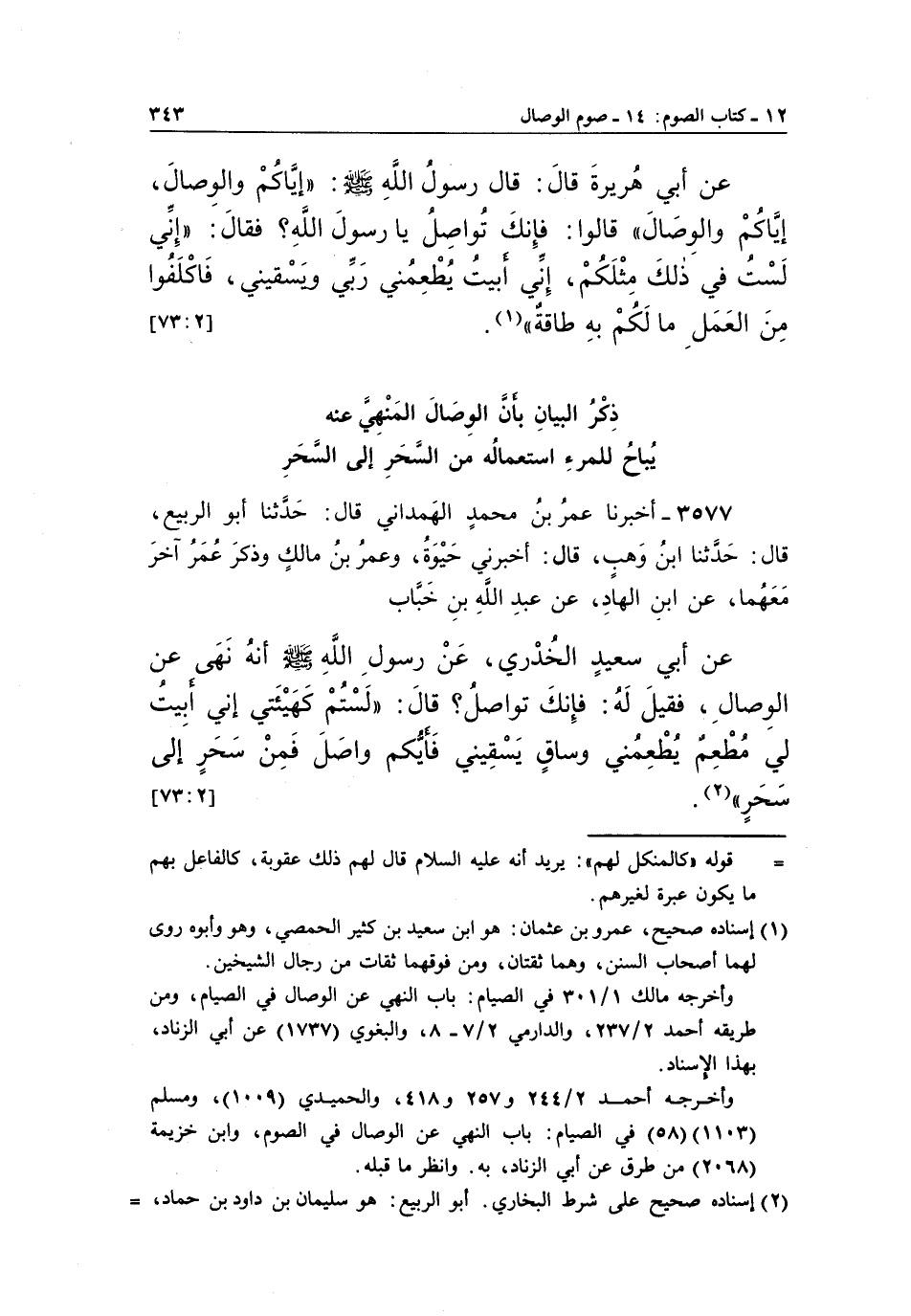 وأخرجه أحمد 3/8 و87، والدارمي 2/8، والبخاري "1963" في الصوم: باب الوصال، و"1967" باب الوصال إلى السحر، وأبو داود "2361" في الصوم: باب الوصال، والبيهقي 2/282 من طرق عن ابن الهاد، به.