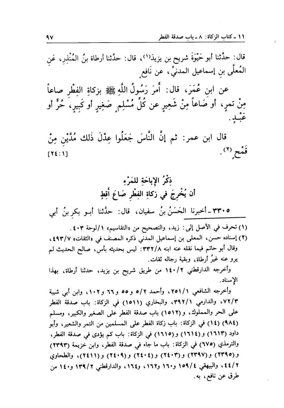 3305 - أَخْبَرَنَا الْحَسَنُ بْنُ سُفْيَانَ، قَالَ: حَدَّثَنَا أَبُو بكر بن أبيذكر الْإِبَاحَةِ لِلْمَرْءِ أَنْ يُخْرِجَ فِي زَكَاةِ الْفِطْرِ صَاعَ أَقِطٍ