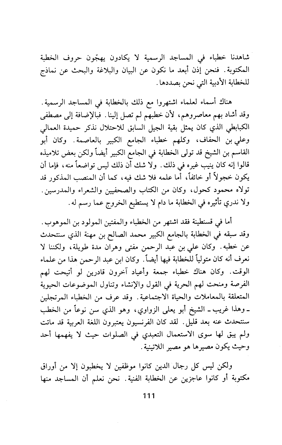 شاهدنا خطباء في المساجد الرسمية لا يكادون يهجون حروف الخطبة المكتوبة. فنحن إذن أبعد ما نكون عن البيان والبلاغة والبحث عن نماذج للخطابة الأدبية التي نحن بصددها.