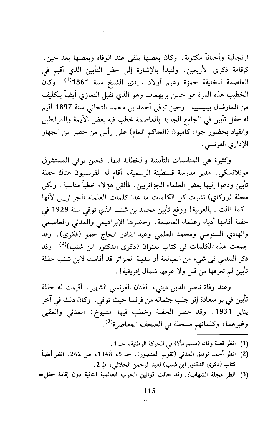(¬2) انظر أحمد توفيق المدني (تقويم المنصور)، ج 5، 1348، ص 262. انظر أيضا كتاب (ذكرى الدكتور ابن شنب) لعبد الرحمن الجلالي، ط 2.