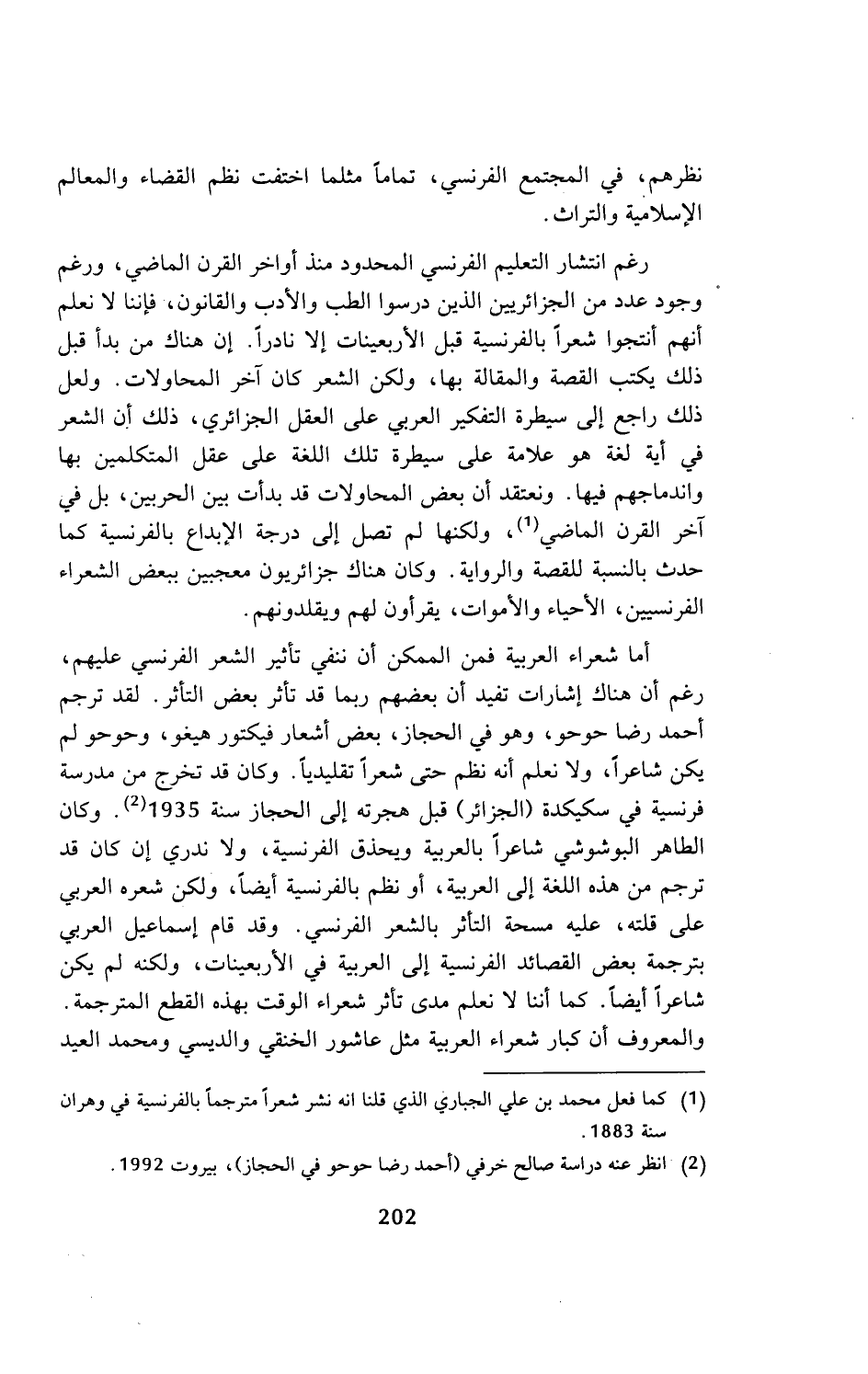 (¬1) كما فعل محمد بن علي الجباري الذي قلنا انه نشر شعرا مترجما بالفرنسية في وهران سنة 1883.