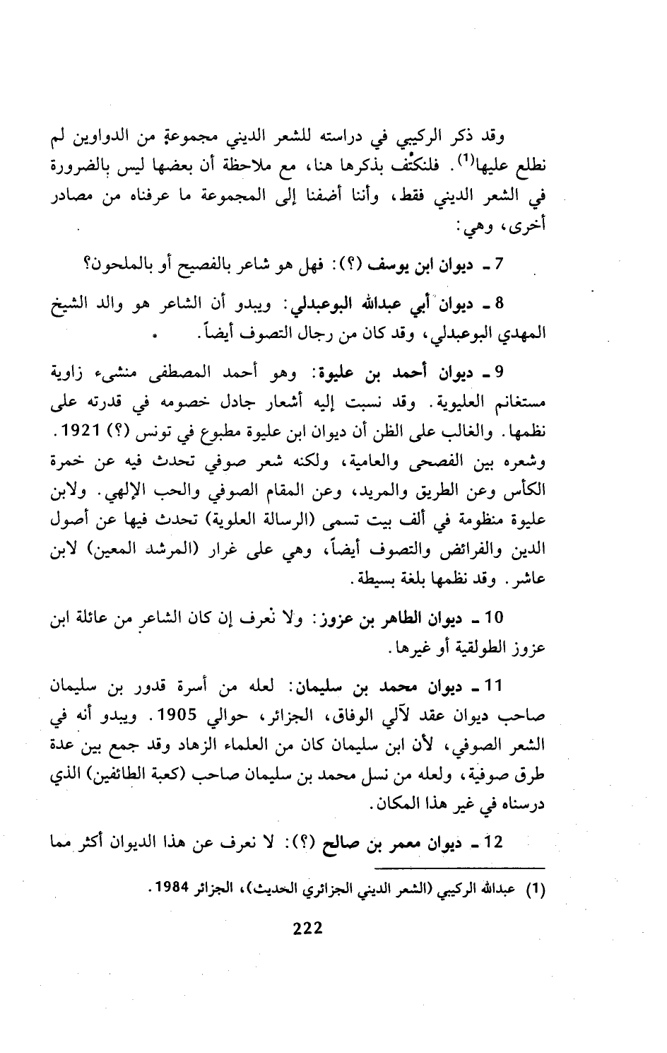 (¬1) عبد الله الركيبي (الشعر الديني الجزائري الحديث)، الجزائر 1984.