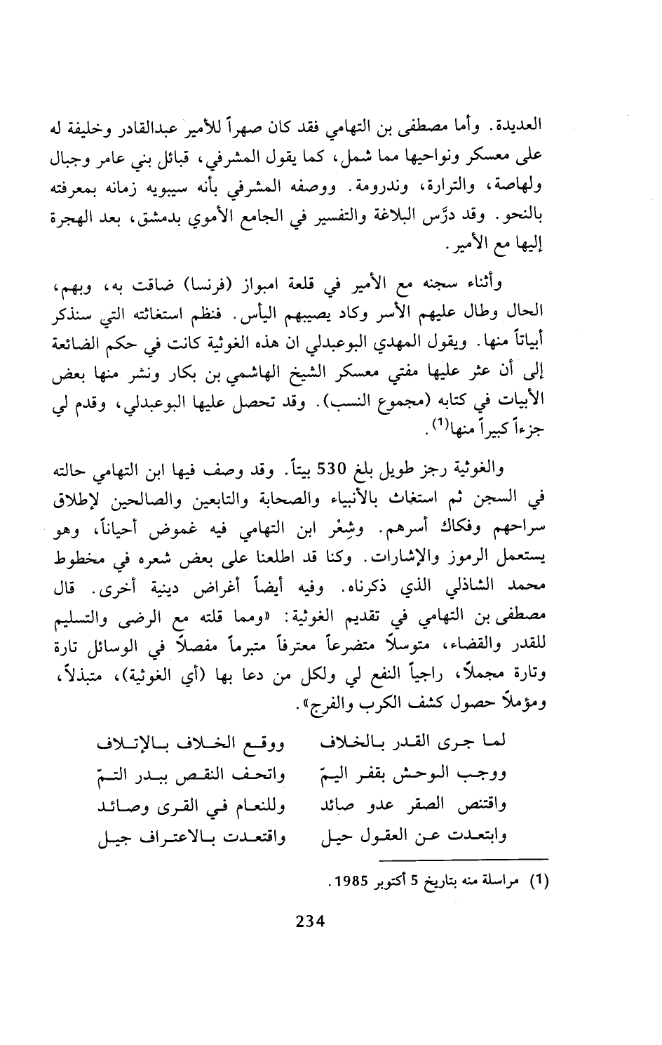 (¬1) مراسلة منه بتاريخ 5 أكتوبر 1985.